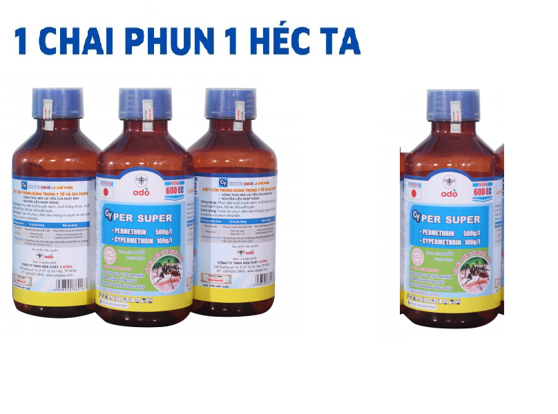 Cty Sản Xuất : Cty TNHH Pesticide Nhật Bản Thành phần : Permethrin 50% + Cypermethrin 10% Cyper Super 600 EC là chế phẩm diệt muỗi và diệt côn trùng hiệu quả được bộ y tế công nhận sử dụng trong gia dụng và y tế. Sản phẩm sử dụng các nguyên liệu nhập ngoại rất an toàn. Nguyên liệu nhập Ấn Độ ( ko phải Trung Quốc nha ) - Sản phẩm sử dụng các nguyên liệu nhập ngoại rất an toàn. - Hàng phun diệt muỗi và ruồi cực mạnh . - tỉ lệ pha : 10ml cho 1lit nước. phun diệt côn trùng trong nhà : 10ml cho 10l nước phun diệt côn trùng cho cây nông nghiệp. Hiệu quả tức thì. hạ gục nhanh - Đặc biệt những trường hợp kháng thuốc thì loại này bao kháng lun. - Mọi người cần tư vấn thì cứ ib mình tư vấn cụ thể trước khi khách quyết định đặt hàng Sản phẩm này là tài sản cá nhân được bán bởi Nhà Bán Hàng Cá Nhân và