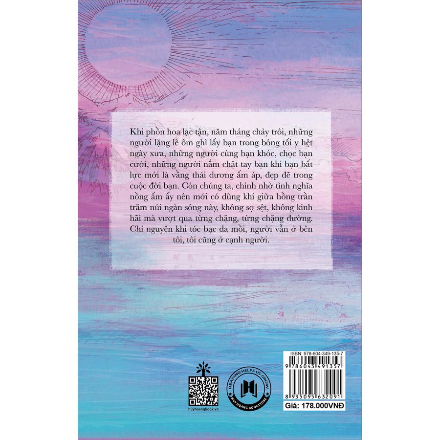Khi phồn hoa lạc tận, năm tháng chảy trôi, những người lặng lẽ ôm ghì lấy bạn trong bóng tối y hệt ngày xưa, những người cùng bạn khóc, chọc bạn cười, những người nắm tay bạn khi bạn bất lực mới là vầng thái dương ấm áp, đẹp đẽ trong cuộc đời bạn. Còn chúng ta, chính nhờ tình nghĩa nồng ấm ấy nên mới có dũng khí giữa hồng trần trăm núi ngàn sông này, không sợ sệt, không kinh hãi mà vượt qua từng chặng, từng chặng đường. Chỉ nguyện khi tóc bạc da mồi, người vẫn ở bên tôi, tôi cũng ở cạnh người.