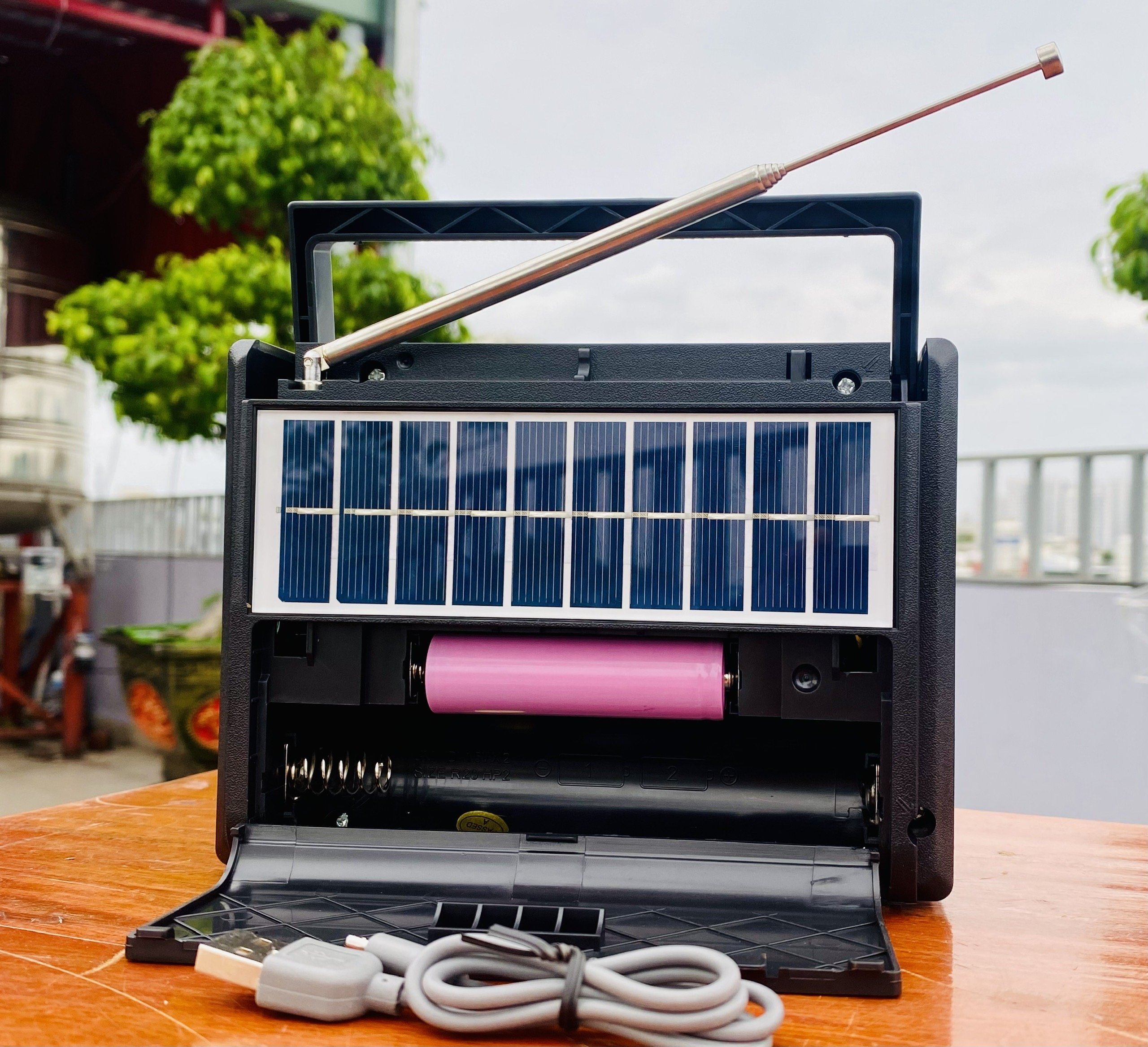 - Đài sạc pin như điện thoại dùng nhiều lần không cần thay pinBắt sóng radio FM/AM/ đa tần nhiều kênh Sử dụng như loa qua BluetoothCó khe cắm thẻ nhớ Usb tiện dụngKiêm đèn pin led siêu sáng