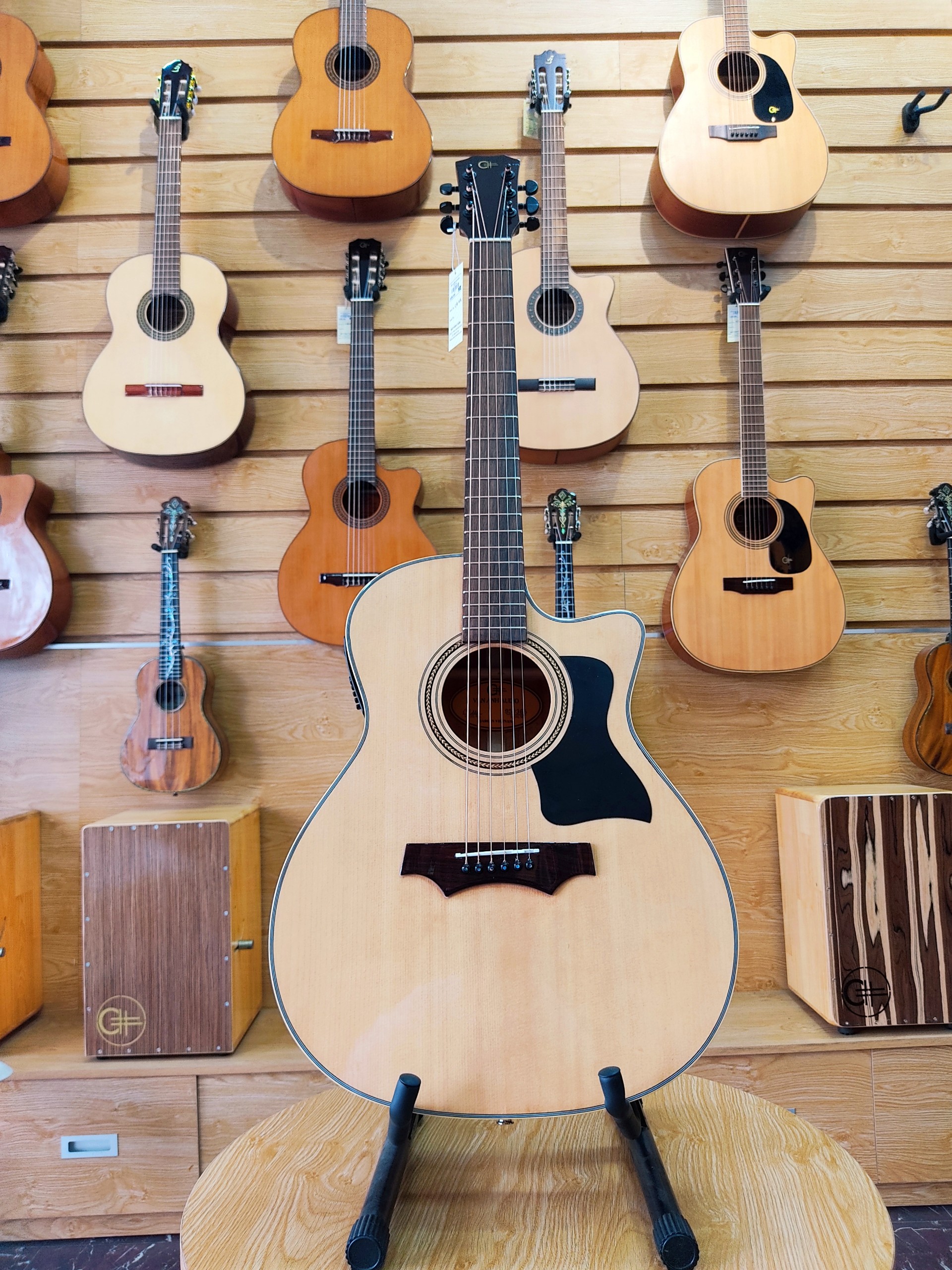 Đàn Guitar Acoustic CL2022 được sản xuất thủ công theo đơn đặt hàng thiết kế riêng cho anh Kim Gia Huy đàn được làm bằng chất liệu chính là gỗ Cẩm Ấn, được nghệ nhân