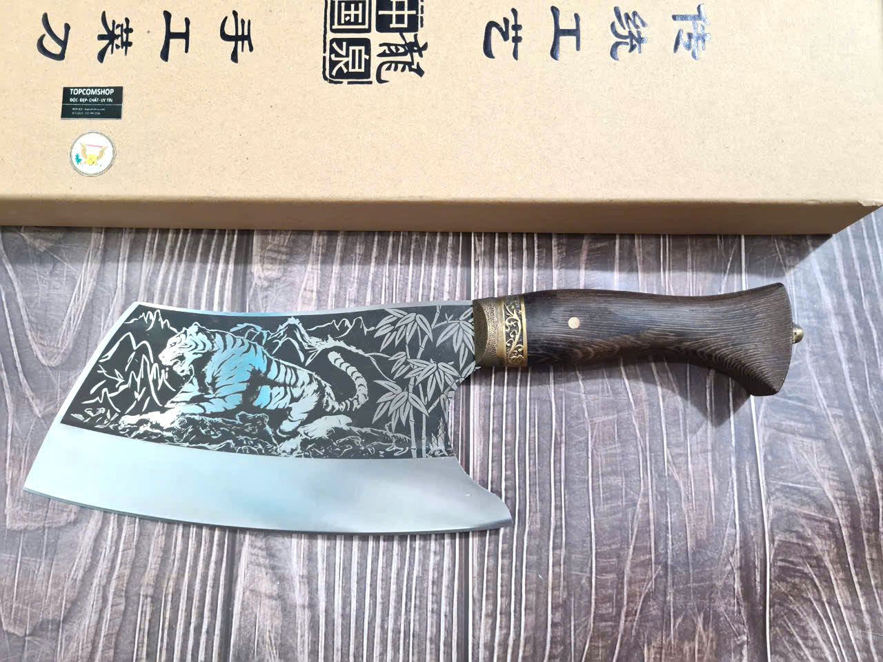 **** DAO CHẶT MÃ TR9 TỔNG DÀI : 34cm, LƯỠI: 23 cm,,RỘNG : 10.5 cm, dày: 5mm, CHẤT liệu lưỡi: 7Cr17MOV (thép 7 crom 17 molypden vanadi) Chất liệu CÁN: gỗ HỒNG ĐÀO, các phụ kiện như khâu, chuôi bằng đồng NẶNG : 7 lạng