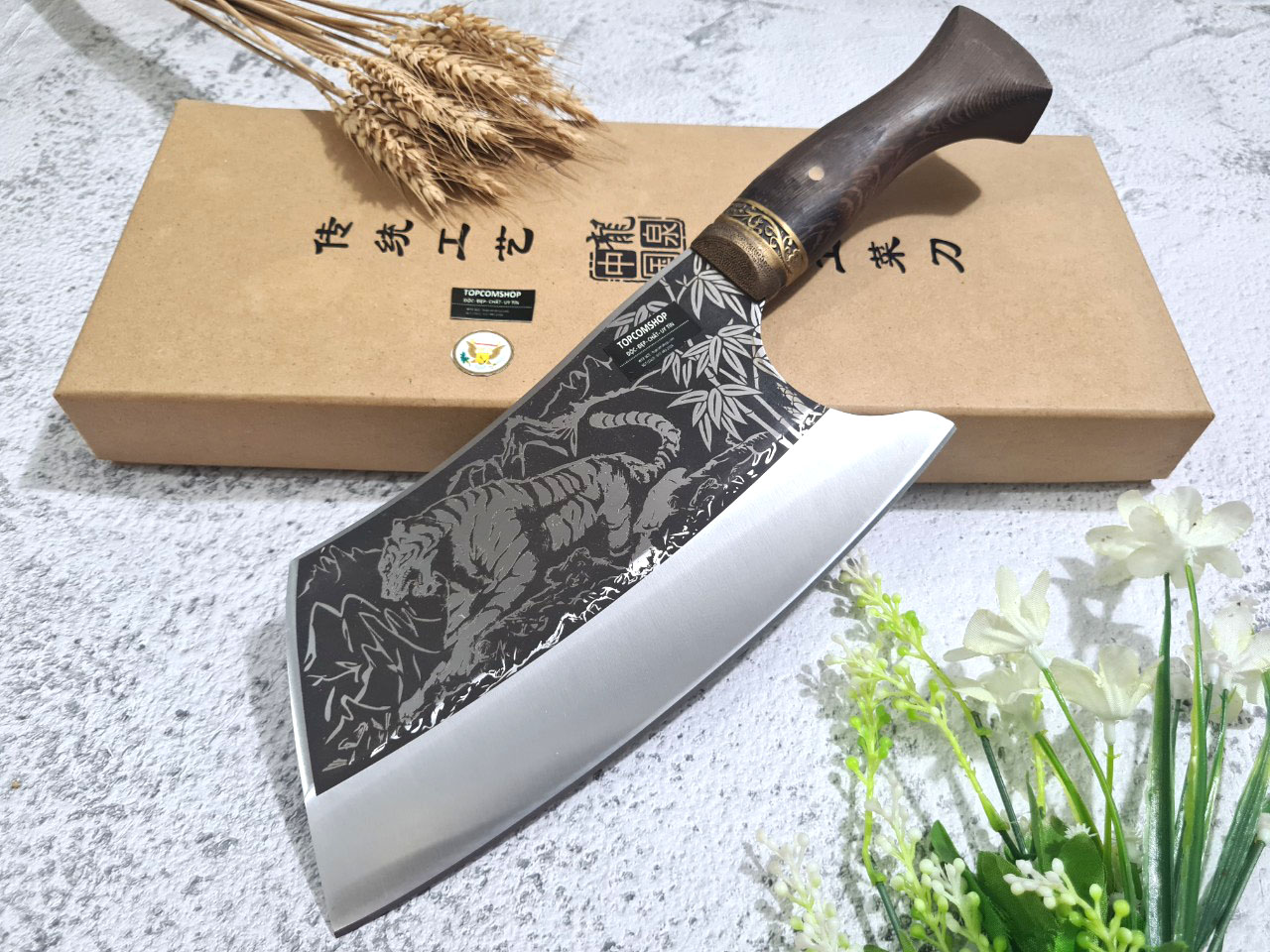 Tên sản phẩm: Dao Phúc Sen Dao Chặt Xương 03 Cán Cẩm - Chất liệu: 100% thép nhíp ô tô được lựa chọn và kiểm duyệt kỹ càng. - Chất liệu cán: gỗ cẩm chỉ