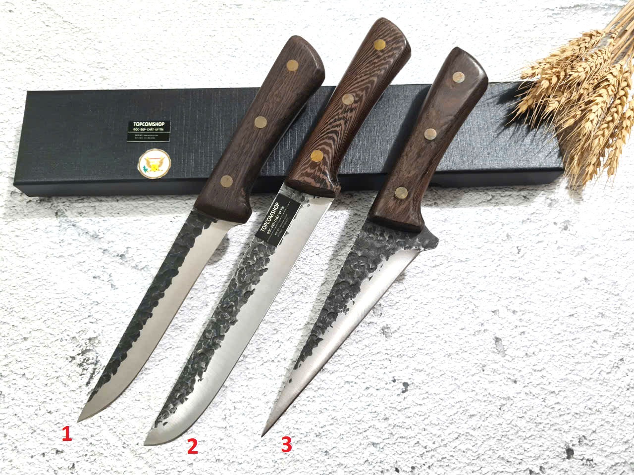 D SỐ 2 : TỔNG DÀI : 30cm, LƯỠI: 17.5cm,RỘNG : 2.9cm, dày: 2.5mm, CHẤT liệu lưỡi: 5Cr15MOV (thép 5 crom 15 molypden vanadi).Chất liệu CÁN: gỗ Cánh gà,.NẶNG : 2 lạng