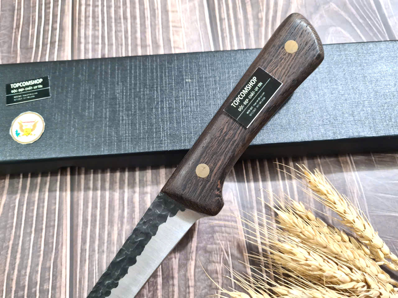 D SỐ 1 : TỔNG DÀI : 27cm, LƯỠI: 14cm,RỘNG : 2.3cm, dày: 2.5mm, CHẤT liệu lưỡi: 5Cr15MOV (thép 5 crom 15 molypden vanadi).Chất liệu CÁN: gỗ Cánh gà,.NẶNG : 1.5 lạng