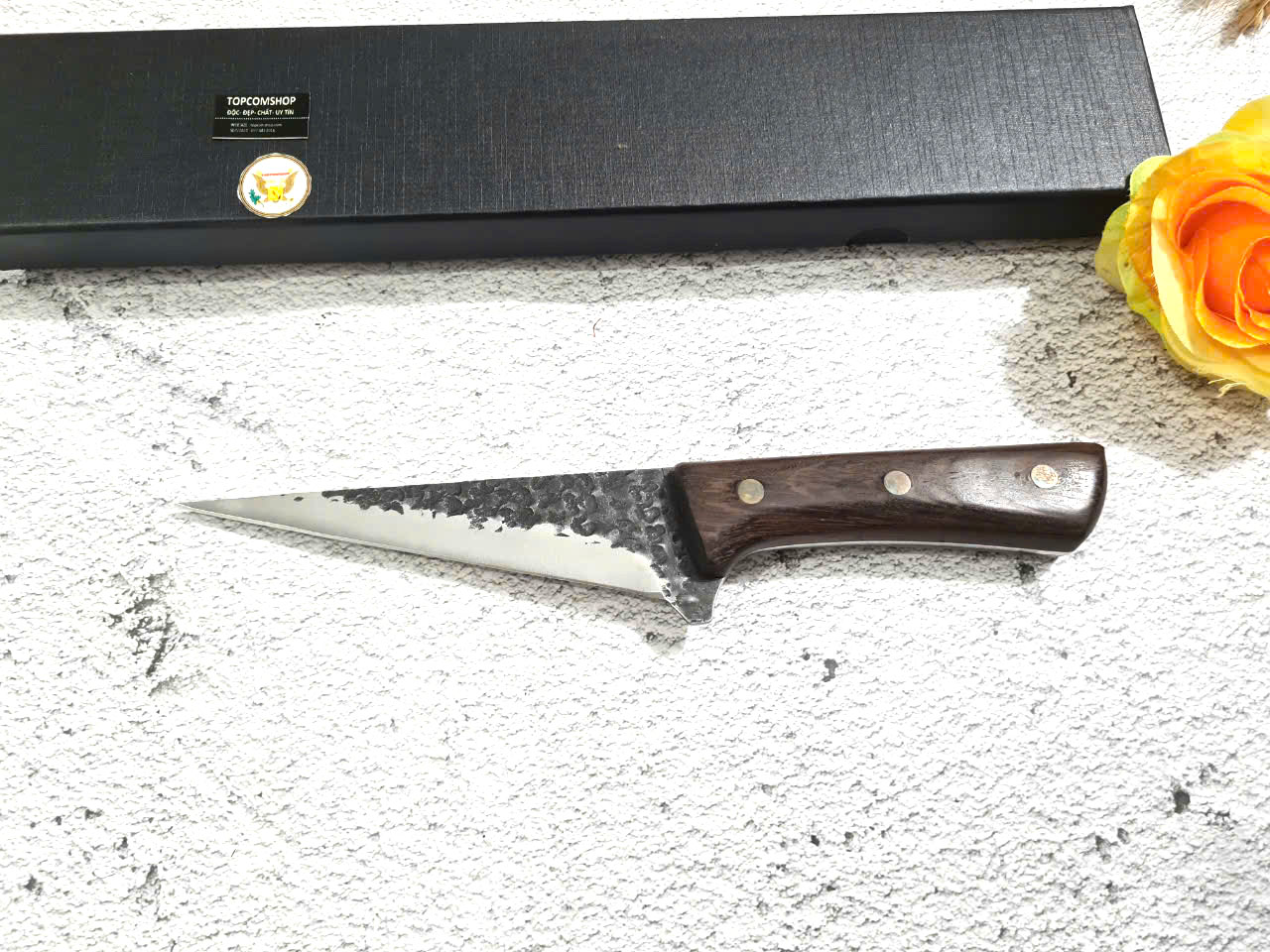 • Chất liệu: Thép Nhật 420J2, độ cứng 53HRC – siêu bền, chống gỉ • Lưỡi dao: Dày 2.5mm, sắc bén, hoàn thiện bằng đá mài nước • Tay cầm: Gỗ Pakka sang trọng, chống