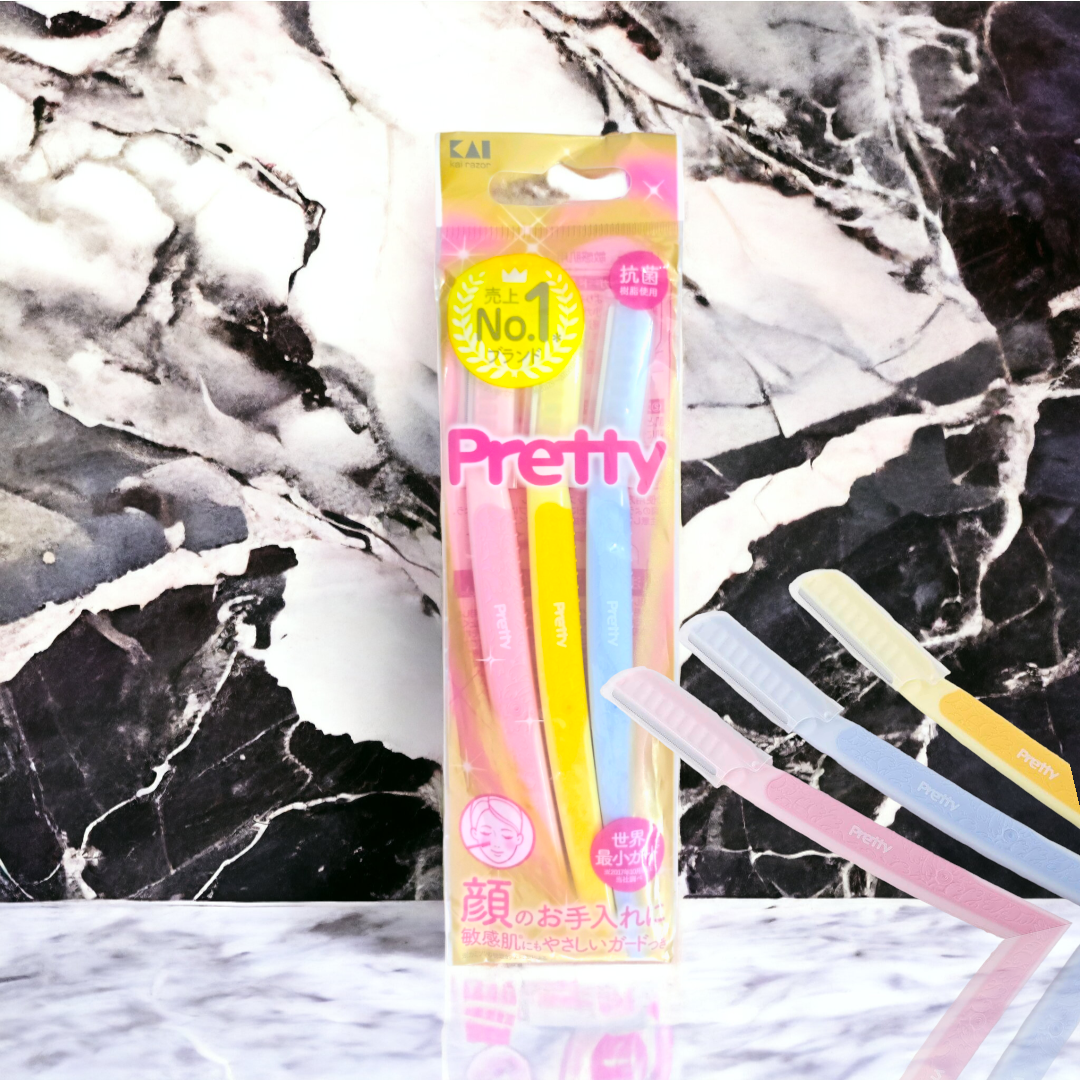 Set 03 chiếc dao cạo mặt Kai Pretty, lưỡi bằng thép không gỉ tráng mạ phủ 2 lớp titanium sắc bén và bền bỉ - nội địa Nhật Bản Chất liệu: Lưỡi bằng thép không gỉ