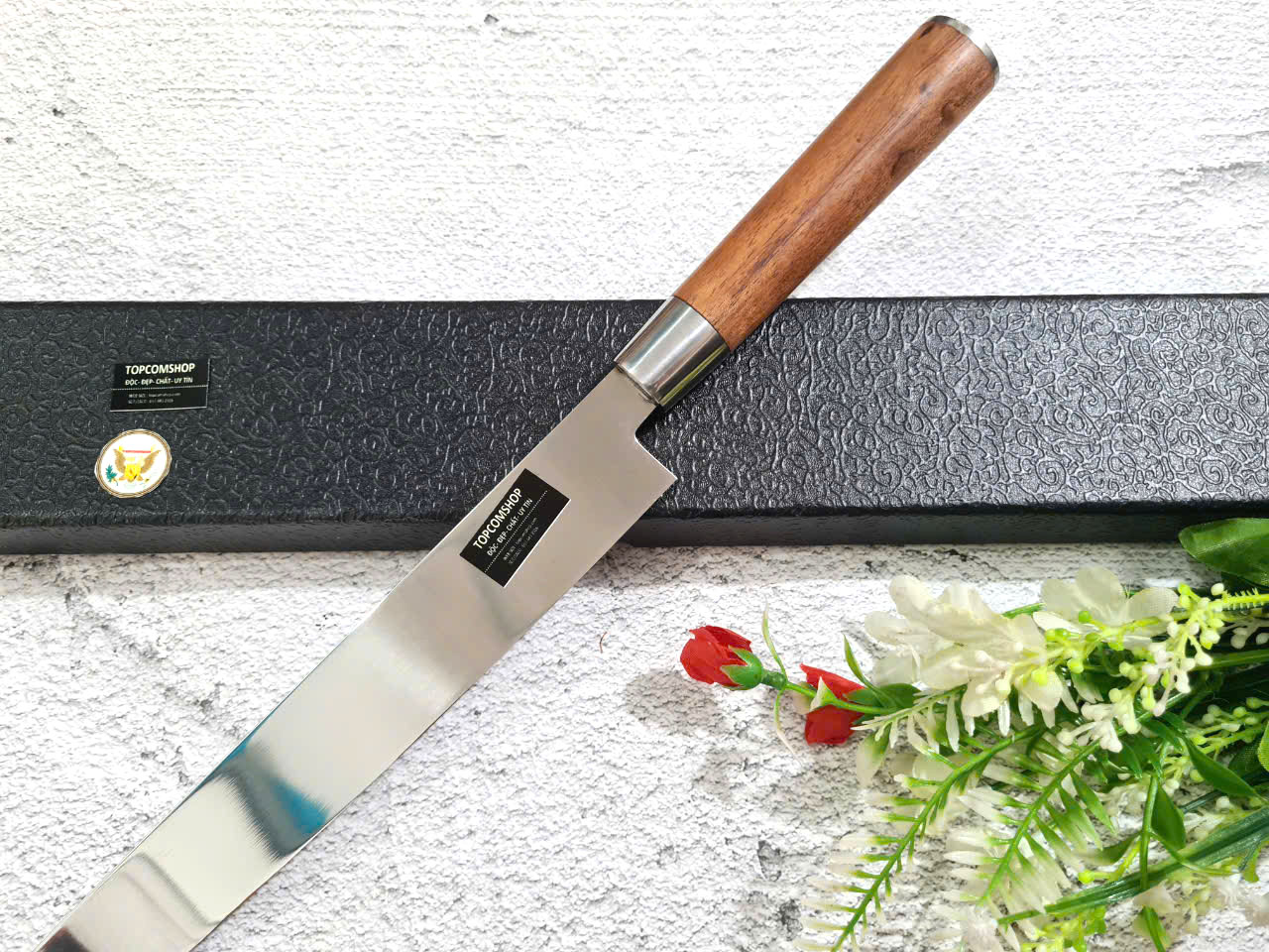 Dao Phúc Sen Dao Đầu Bếp Lọc Thái Cán Cẩm DBC - Kích thước: lưỡi: 22cm, cán: 12,5cm, rộng: 6,5cm, dầy: 1ly, trọng lượng: 250g - Chức năng: sử dụng chuyên thái lọc thịt ,cá,