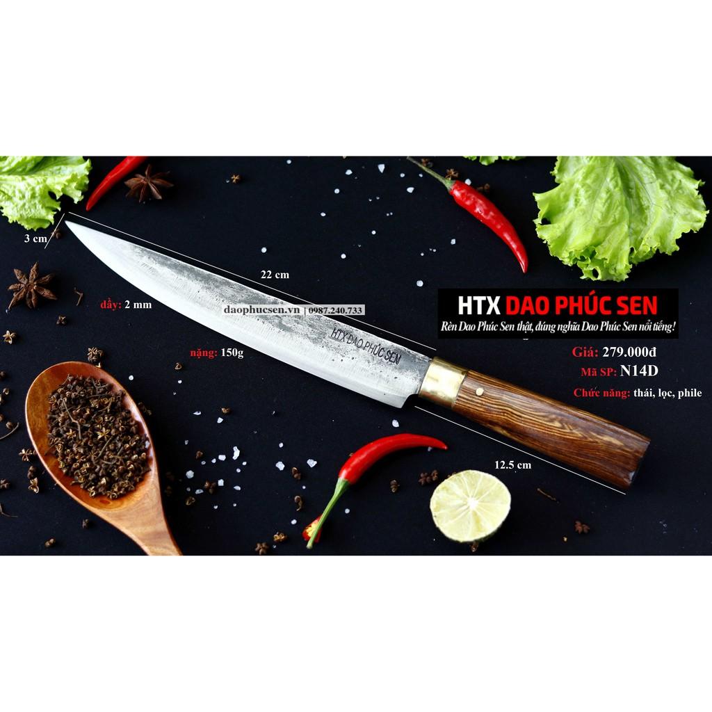 Dao Phúc Sen Phile Chống Dính - N14TMDD - Chức năng: Chuyên THÁI, LỌC, PHI LÊ cá thịt - Kích thước: Lưỡi: 22cm, cán: 12.5 cm, rộng: 3 cm, dầy: 2 mm, trọng lượng: 150g