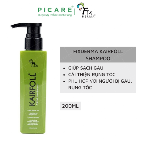 - Dầu gội giảm rụng tóc Fixderma Kairfoll Shampoo giúp tóc chắc khỏe, giảm tình trạng rụng tóc và làm sạch gàu. Giúp tóc mềm và bóng mượt. - Dầu gội giảm rụng tóc và