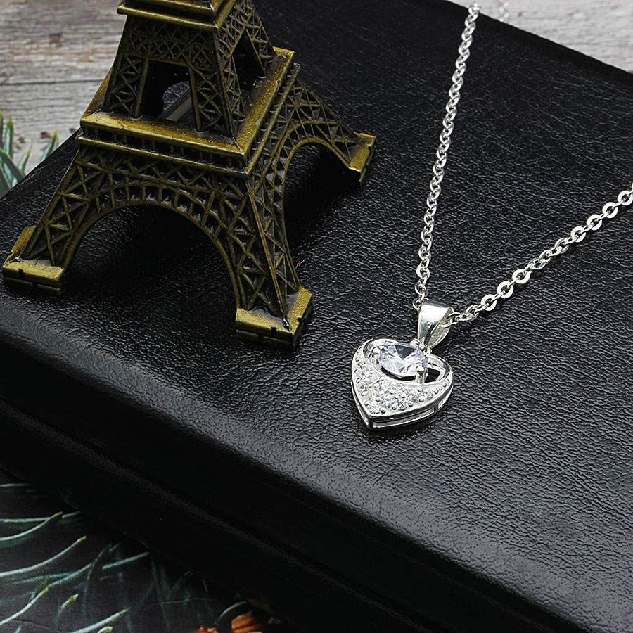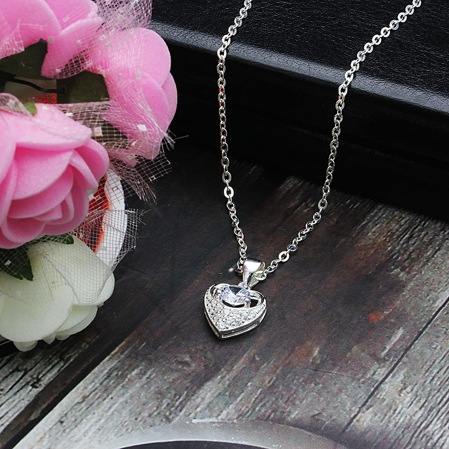Dây chuyền nữ bạc dễ thương hình trái tim đá lấp lánh