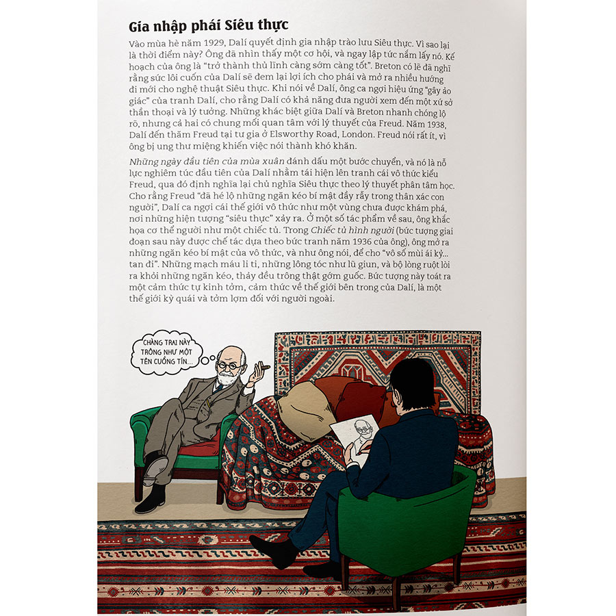 Salvador Dalí là một trong những nghệ sỹ nổi tiếng nhất thế giới, cả vì phong cách sống hoang toàng, chòm ria mép bất chấp trọng lực, cho đến thứ nghệ thuật kỳ lạ của ông. Cuốn sách này kể về cuộc đời của Dalí và khám phá ý nghĩa của những bức tranh Siêu thực của ông. Tinh túy của chủ nghĩa siêu thực Dalí chính là: nơi cái bình thường trở thành cái phi thường. Dalí tự xem mình là một bậc thầy Phục Hưng – một kiện tướng về vẽ tranh sơn dầu – nhưng ông phá tan và vượt ra ngoài cái quy củ gọn gàng, ngăn nắp của mỹ thuật. Những tác phẩm quan trọng trong sự nghiệp của Dalí đều được giới thiệu đầy đủ trong cuốn sách này, từ Dáng người bên cửa sổ, đến Những ngày đầu tiên của mùa xuân, Sự dai dẳng của ký ức…