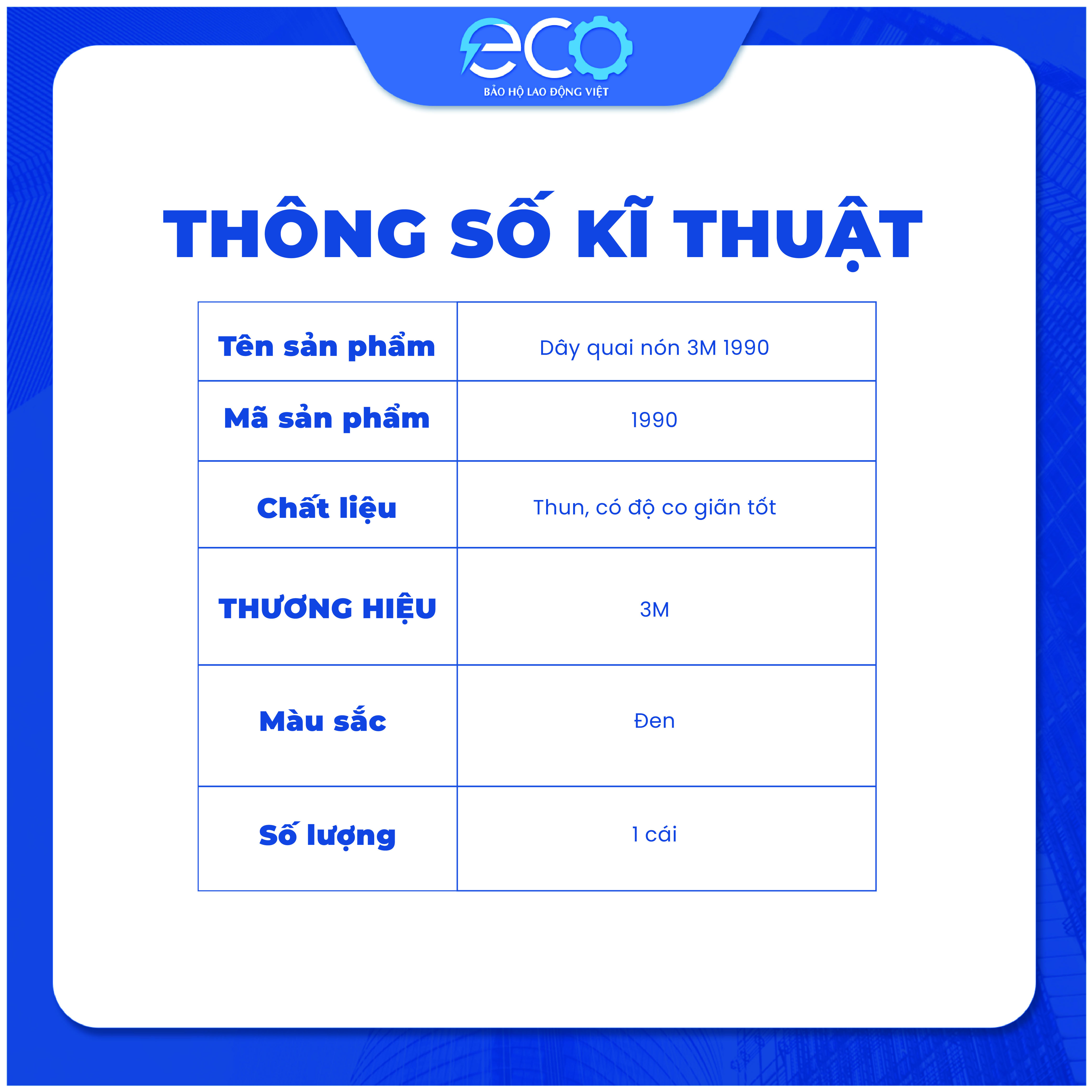 Dây quai nón mũ bảo hộ 3M 1990 là một phụ kiện thay thế cho mũ bảo hộ của 3M, giúp cố định mũ trên đầu và tăng cường độ an toàn khi sử dụng.