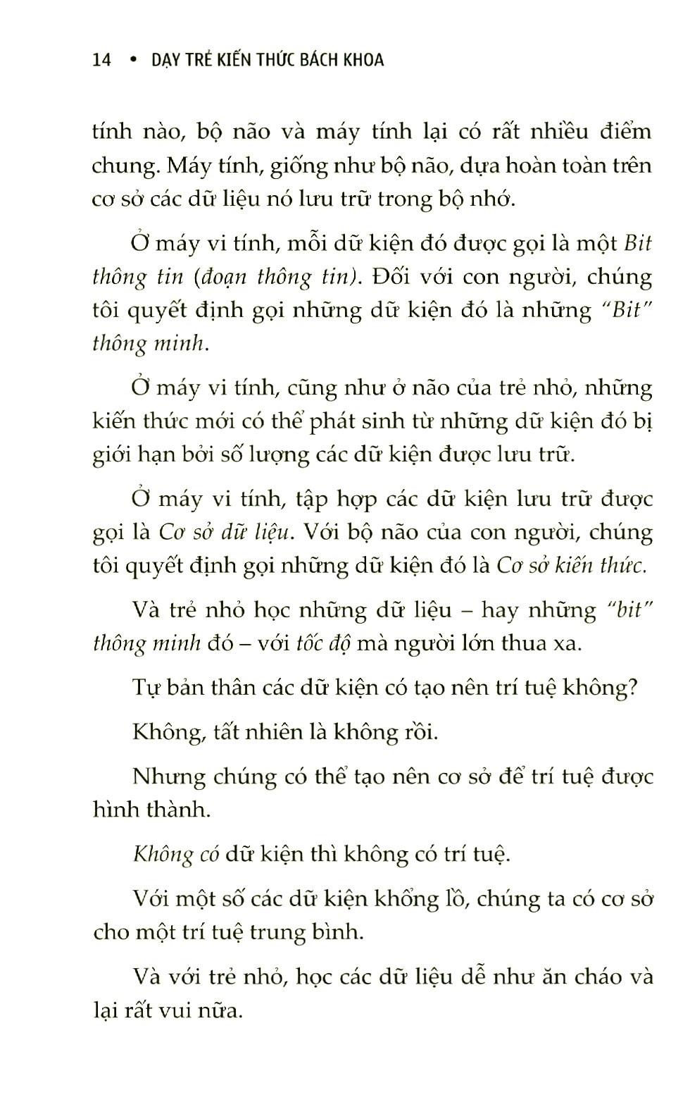 “Dạy trẻ kiến thức bách khoa” cung cấp một chương trình toàn diện để cho bạn thấy việc dạy trẻ cách đọc, làm Toán và mở rộng khả năng học hỏi dễ dàng và thú vị đến mức nào. Cuốn sách hướng dẫn bạn cách bắt đầu và mở rộng chương trình đầy ý nghĩa này. Cách tạo ra và sắp xếp các tài liệu cần thiết và cách để phát triển toàn diện hơn khả năng học hỏi của trẻ.