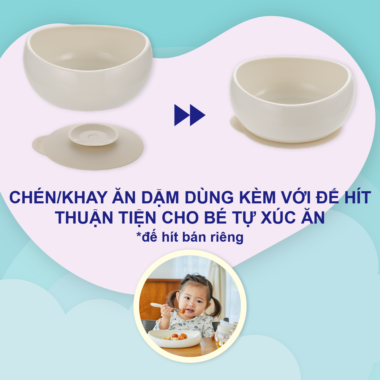 Dùng cho bé từ 7 tháng tuổi - giai đoạn bé tập tự xúc ăn Chén có 2 size, vui lòng xem kích thước ở hình ảnh mô tả. Độ nghiêng của thành chén