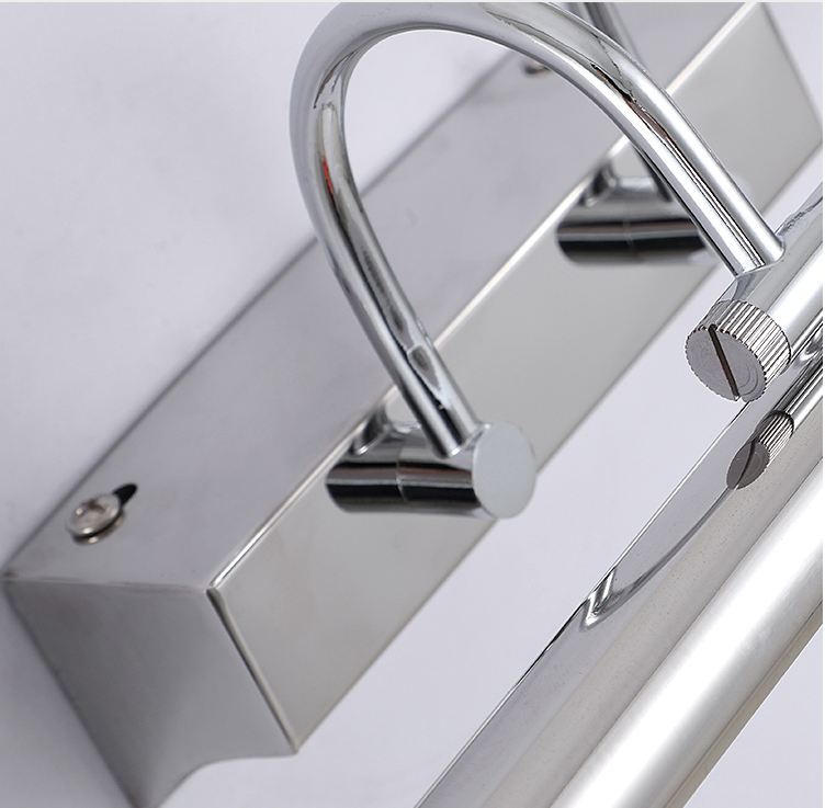 Chất liệu inox không gỉ sáng bóng siêu bền Nhân LED sáng và sáng đều. Điều chỉnh được góc chiếu của đèn Dài 55 (cm) Công suất 12W – Sáng tương đương 40W bóng sợi đốt cũ. Tuổi thọ bóng led cao lên tới 30.000h Kiểu dáng hiện đại. Ánh sáng 4000k (vàng ấm) Sử dụng gắn tường soi gương, soi tranh Sản phẩm gương nội thất cao cấp, sang trọng, tiện nghi, hiện đại. Những mẫu đèn gương hiện đại đã quá quen thuộc với không gian phòng tắm của mỗi gia đình và đang ngày càng được nhiều gia đình ưa thích sử dụng. Dòng đèn này không chỉ cung cấp ánh sáng phù hợp mà còn đem đến vẻ đẹp cho không gian phòng tắm để con người có những phút giây thư giãn nhất trong bồn tắm. Nhờ việc sử dụng chất liệu inox không gỉ bền chắc, không oxy hóa trong môi trường có độ ẩm cao, thường xuyên tiếp xúc với nước, mẫu đèn tường cao cấp này đã có được chất lượng bên ngoài vô cùng hoàn hảo, phù hợp với không gian đặc biệt trong phòng tắm. Bạn sẽ có được một thiết bị chiếu sáng lâu dài nhất, phục vụ tốt mọi hoạt động con người. Bên cạnh đó, với việc theo đuổi phong cách hiện đại đơn giản, mẫu đèn có phần khung hình ống nước đặc nhỏ kết hợp với trụ đèn dày, bền vững và nhiều màu sắc nổi bật đã làm nổi bật tường nhà đơn điệu, phù hợp với mọi màu sắc sơn tường, gạch ốp tường phòng tắm. Ngoài ra, tùy thuộc vào diện tích của phòng tắm mà bạn có thể chọn bóng đèn có công suất phù hợp, đảm bảo phân bố ánh sáng đều.