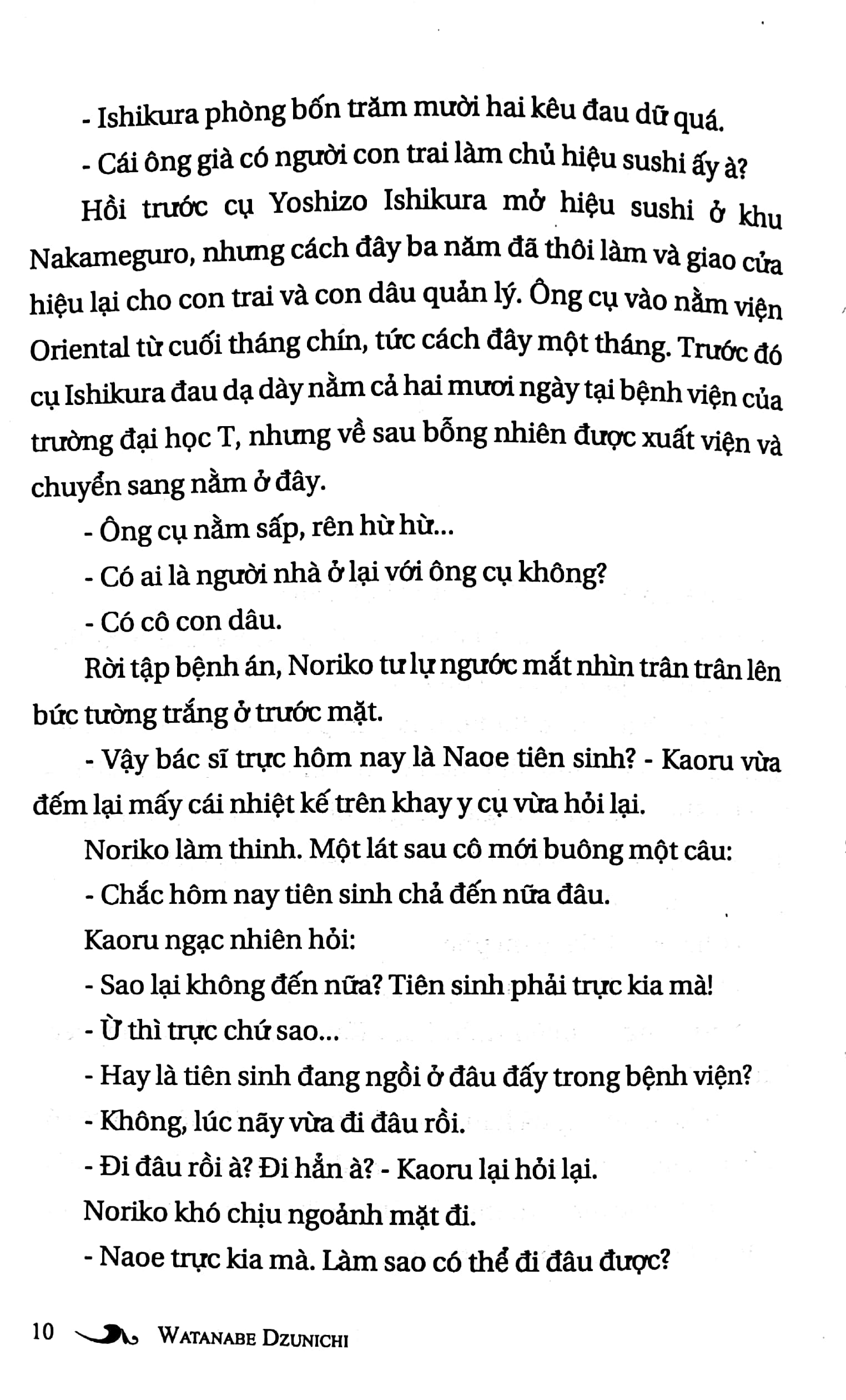 Đèn Không Hắt Bóng không đơn thuần kể về đời sống bệnh viện. Nhìn ở góc độ khác, nó là câu chuyện tình yêu lạnh lùng, bí ẩn và đau đớn. Mối quan hệ giữa Noriko và bác sĩ Naoê phải chăng là tình yêu một chiều? Đứng bên cạnh vị bác sĩ tài hoa, hình ảnh của Noriko khá lặng lẽ. Yêu Naoê, tự nguyện gắn bó với anh, cô vẫn phải chứng kiến hàng loạt mối quan hệ bất thường của Naoê với những phụ nữ khác, từ vợ và con gái của bác sĩ viện trưởng, cô gái quán bar, cho đến nàng ca sĩ ngôi sao… Nhưng đau khổ hơn hết, cô nhận ra Naoê là một pháo đài riêng, không cho cô thâm nhập, ngay cả những giây phút gần gũi nhất cả về thân xác lẫn tình cảm.
