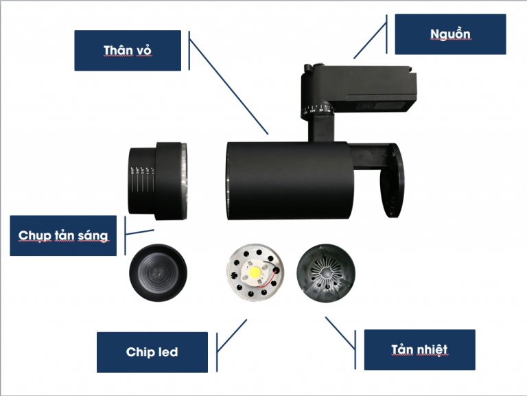 - Cấu tạo đèn LED rọi zoom Cấu tạo đèn LED rọi ZoomChip LED Được sử dụng chip LED COB có khả năng chiếu rọi với cường độ ánh sáng tập trung cao, thích hợp cho chiếu sáng trưng bày sản phẩm và trang trí tạo điểm nhấn. Nguồn Driver Đèn với hiệu suất lên tới 95% đảm bảo cung cấp điện ổn định cho đèn led nâng cao tuổi thọ đèn LED. Bộ phận tản nhiệt Tản nhiệt của đèn được thiết kế nhôm nguyên khối dày được thiết kế đa chiều với lỗ thoát nhiệt và khoang tản nhiệt rộng giúp tăng khả năng tản nhiệt của đèn. Vỏ đèn Bao gồm thân bao bọc đèn và mặt chụp tản sáng. Phần vỏ đèn được cấu tạo từ nhôm đúc liền khối với lớp sơn tĩnh điện cao cấp bảo vệ bộ phận nguồn và tính thẩm mỹ cho sản phẩm. Chụp tản sáng được thiết kế dày giúp ánh sáng đi ra đều, không gây lóa mắt. Tuy nhiên, đối với rọi ray ZOOM chúng ta có thêm một bộ phận đặc biệt đó chính là ống ZOOM – điểm tạo nên tính năng vượt trội của dòng đèn LED rọi ZOOM. Đèn LED rọi ZOOM thay đổi góc chiếu sáng từ 15-60 độ2. Ưu điểm đèn LED rọi zoom Các loại LED rọi ray luôn giúp không gian trở nên nổi bật và đẹp mắt Đèn LED rọi ray ROOM 10w thân trắng đang ngày càng được ưa chuộng và ứng dụng rộng rãi với những ƯU ĐIỂM VƯỢT TRỘI: