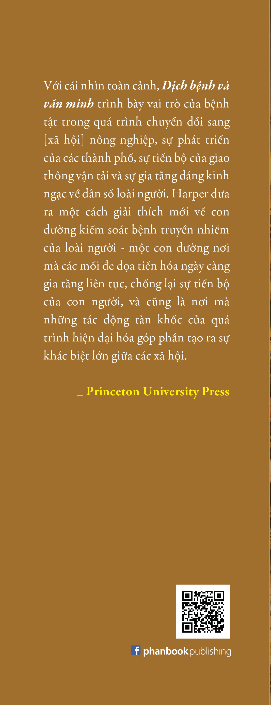 Thông qua Dịch bệnh và văn minh: Một đại sử của nhân loại, Kyle Harper cho thấy sức khỏe con người liên đới và phụ thuộc vào quá trình phát triển của văn minh. Và dịch bệnh không thể tách rời khỏi sự thịnh vượng hay suy vong của chính hành tinh này.