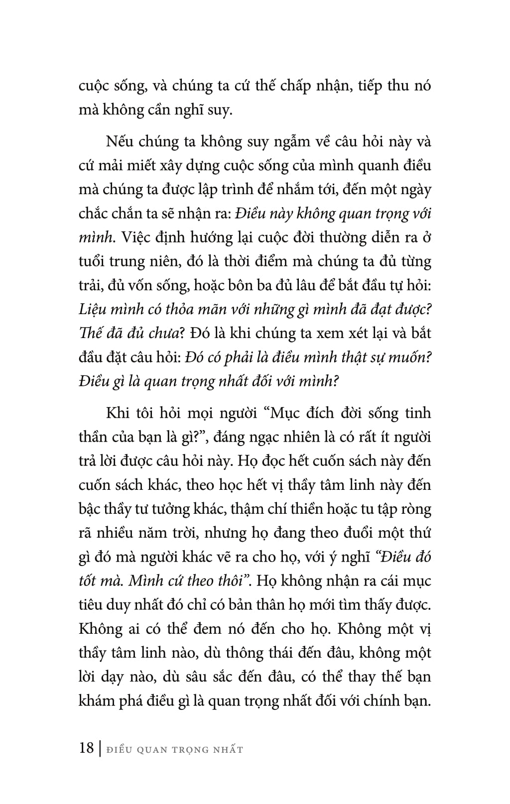 Cuốn sách The Most Important Thing: Discovering Truth at The Heart of Life này sẽ không chỉ giúp bạn chiêu đãi và nâng cao tinh thần của mình, mà còn cung cấp cho bạn phương tiện để đi sâu vào trải nghiệm trực tiếp về sự hiện hữu, từ đó bạn sẽ nếm được vị của phúc lành nhờ biết ưu tiên cho điều quan trọng nhất.