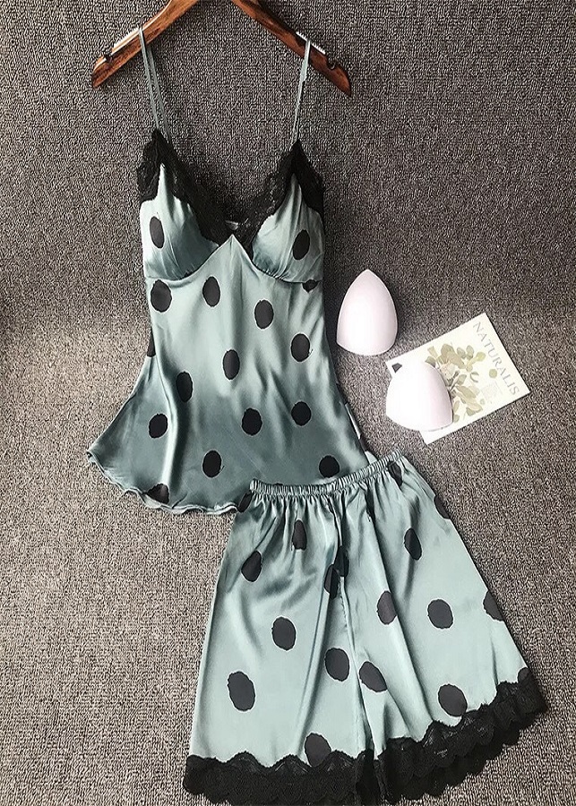 Bộ ngủ lụa cao cấp DORIS.ALLURE chấm bi hai màu xanh, hồng mềm mịn - BN089 ( CLIP QUAY TẠI SHOP)