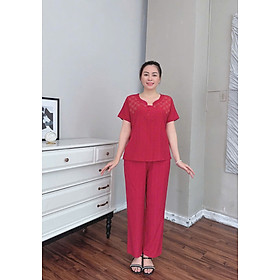 Thời trang trung niên Bộ phối Áo đũi xước thêu hoa tinh xảo và quần đũi lụa mềm mịn đủ size từ 45 tới 65kg - Tuấn Tú Store 68 - Chi tiết sản phẩm: Áo tay lỡ, quần dài. Kiểu dáng xinh xắn, thanh lịch, trẻ trung. - Chất liệu : Đũi cao cấp. Chất liệu có độ thấm hút cao, nhanh khô. Mềm mại tạo cảm giác thoải mái cho người mặc.
