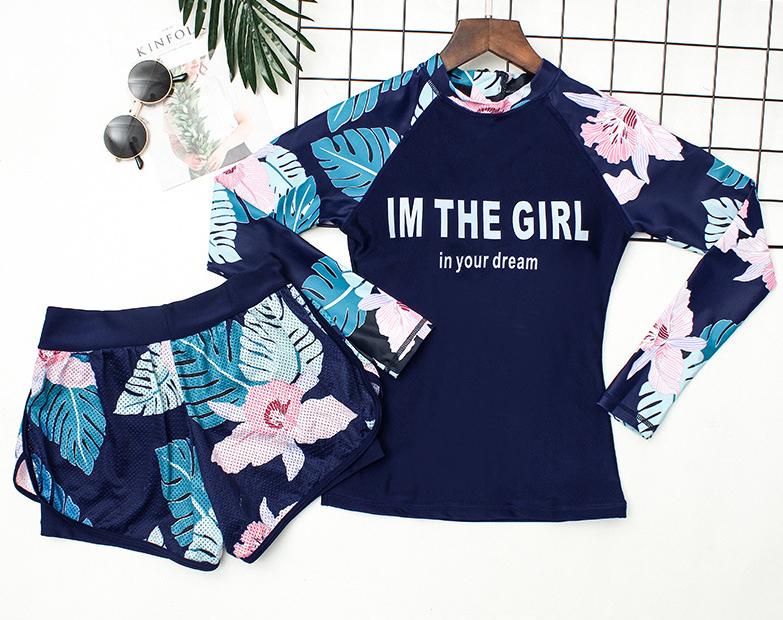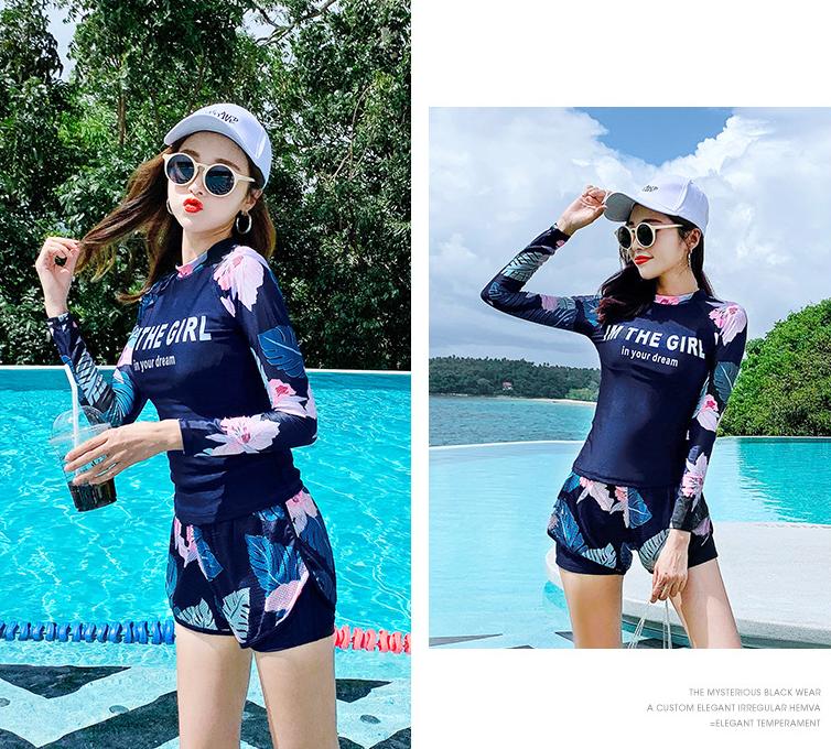 Bộ bơi nữ 3 chi tiết chống nắng toàn thân, áo bơi dài tay + quần sooc đùi + quần bơi dài | KT023