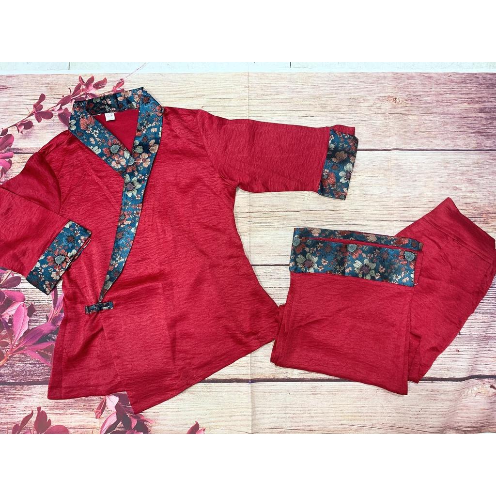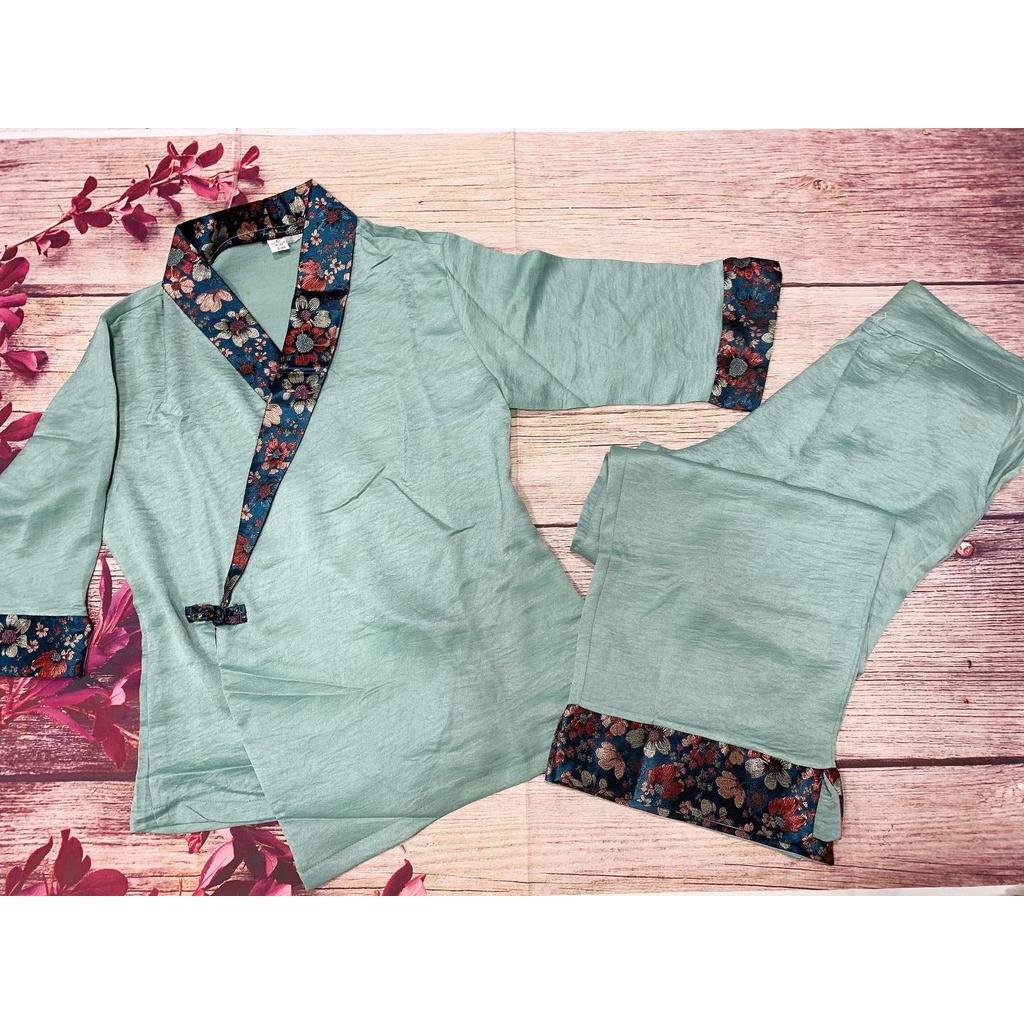 Quần áo phật tử, đồ lam đi chùa mẫu gấm xẻ tà #fashion #quanaophattu