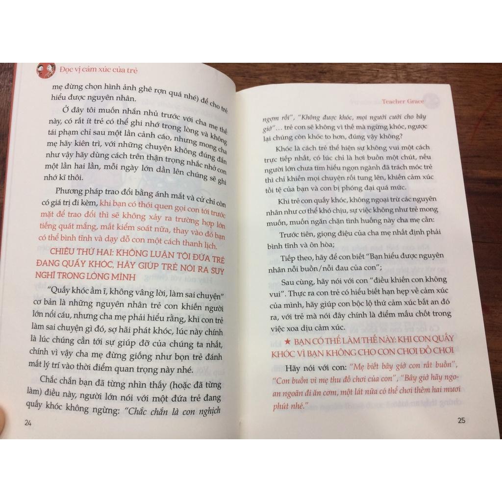 Đã bao giờ bạn thấy bất lực khi con mình lăn lộn trong siêu thị, khóc hết nước mắt chỉ vì một quả bóng bay bị nổ, hoặc thức giấc mỗi đêm vì sợ hãi những "quái vật tưởng tượng"? Những cơn la hét, giọt nước mắt, hay nỗi sợ vô hình thường khiến cha mẹ rơi vào hoang mang, không biết phải làm gì để xoa dịu và thấu hiểu con. Cuốn sách này là chìa khóa giúp bạn giải mã thế giới cảm xúc đầy bí ẩn của trẻ. Mỗi cảm xúc đều chứa đựng một ý nghĩa, ý định riêng. Bằng cách sử dụng những ví dụ thực tế từ đời sống, cuốn sách giúp cha mẹ: - Hiểu được từng cung bậc cảm xúc của trẻ và các dấu hiệu ẩn chứa đằng sau. - Nhận diện nhu cầu thực sự của trẻ thông qua ngôn ngữ cảm xúc, phù hợp với từng giai đoạn phát triển. - Biết cách giao tiếp và hỗ trợ trẻ vượt qua những tình huống khó khăn, đồng hành cùng con trên con đường đi tới sự tự chủ và hạnh phúc. - Đây chắc chắn sẽ là một tài liệu hữu ích giúp cha mẹ và con cái xây dựng một mối quan hệ bền chặt, dựa trên sự đồng cảm và thấu hiểu