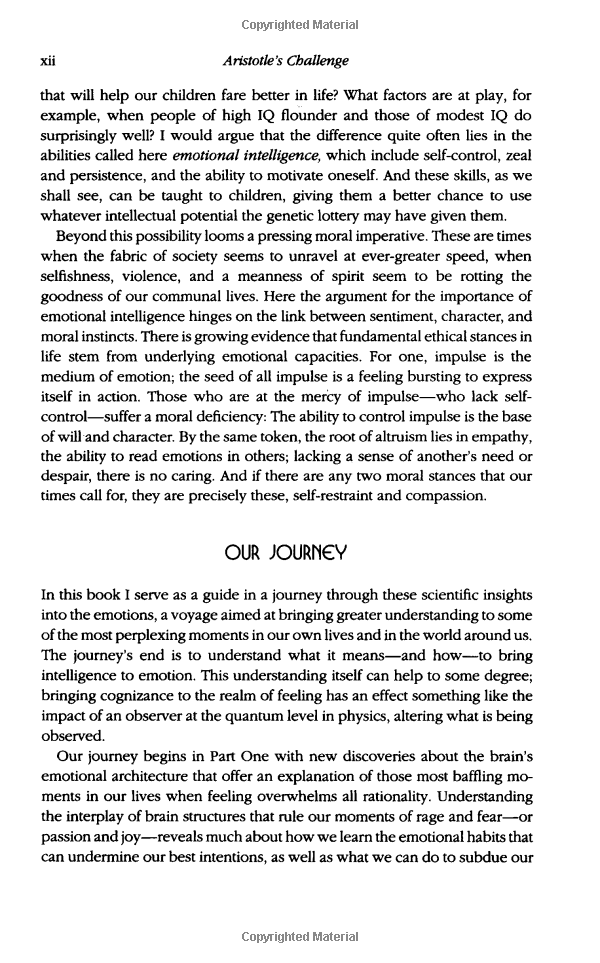 The best news is that "emotional literacy" is not fixed early in life. Every parent, every teacher, every business leader, and everyone interested in a more civil society, has a stake in this compelling vision of human possibility .