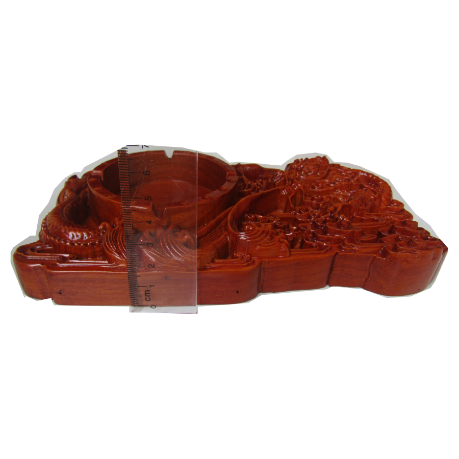 Gạt tàn bằng gỗ nguyên khối sơn phu bóng đẹp chạm rồng phun lửa, cá chép, rồng phượng rất tinh xảo