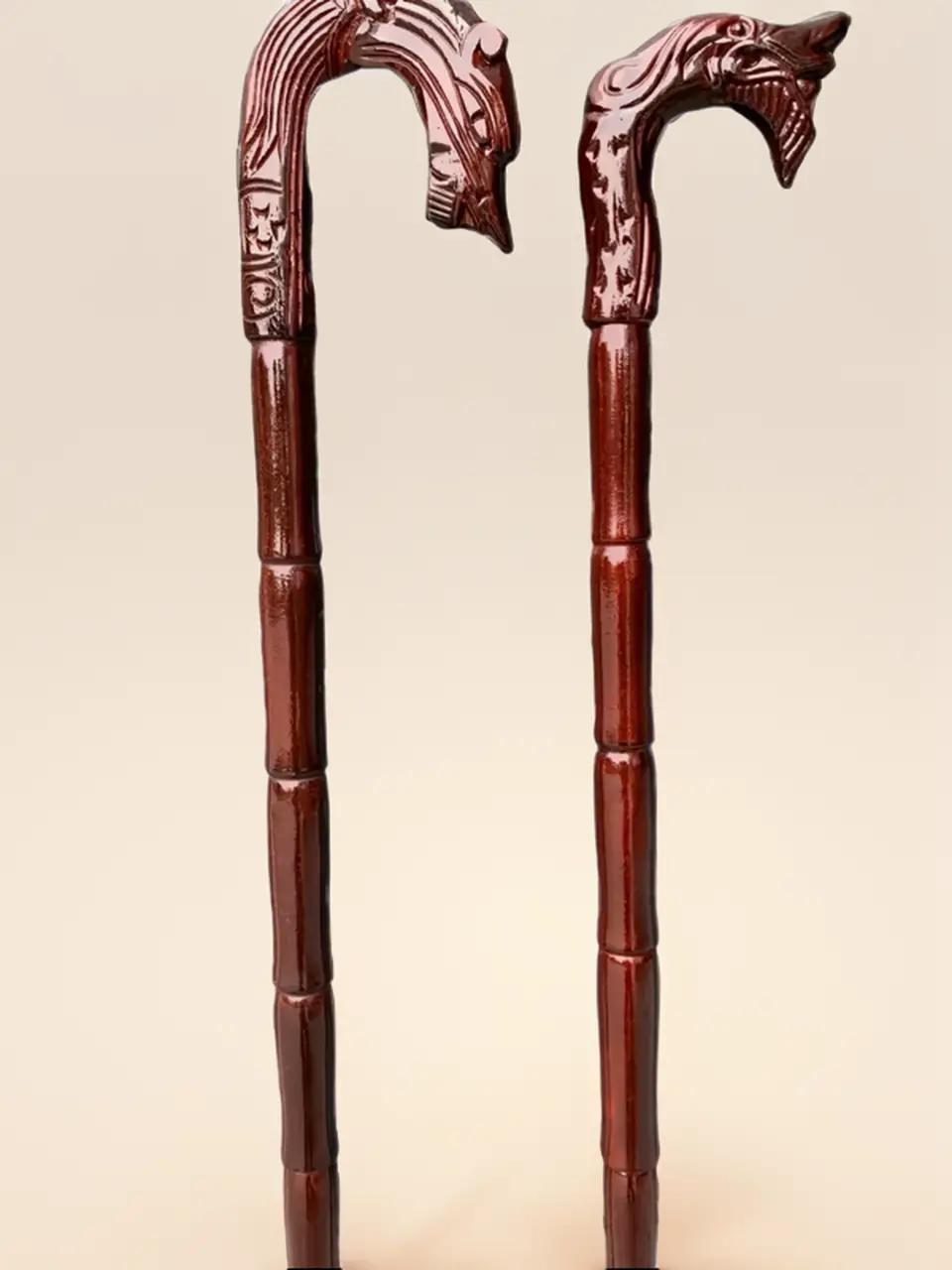 ✨Gậy batoong gỗ đầu trạm rồng cho người già