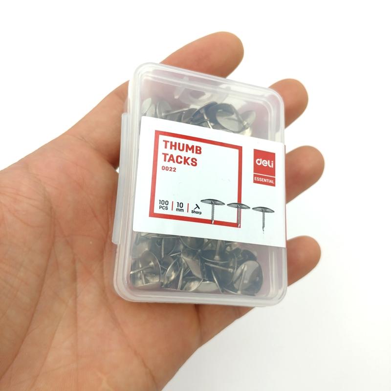 Ghim Mũ Inox Deli 22 gồm rất nhiều ghim được đóng trong hộp nhựa chắc chắc. Nhờ đó, bạn có thể dễ dàng bạn bảo quản ghim cẩn thận, tránh để thất lạc, rơi rớt. Nắp bật dễ sử dụng.