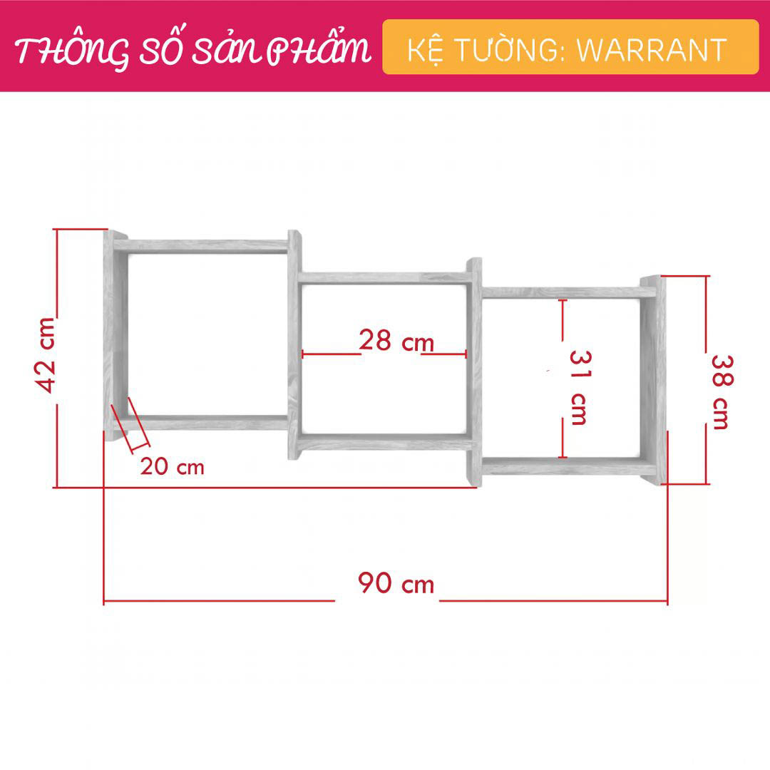 Mua tại TiktokMang đậm phong cách nội thất đơn giản, kệ gỗ treo tường trang trí hiện đại SMLIFE Warrant là một sự bổ sung hoàn hảo cho căn hộ hay văn phòng của bạn. Kệ gỗ Warrant được thiết kế theo phong cách đơn giản, hiện đại giúp bạn thoải mái trang trí sách hay các vật dụng trang trí an toàn. Sử dụng vật liệu ván ép công nghiệp MDF chống ẩm phủ Melamine cao cấp giúp kệ gỗ trang trí SMLIFE có độ bền cao, chống trầy và chống ẩm rất tốt. Bạn có thể tự lắp đặt sản phẩm dễ dàng với các phụ kiện và hướng dẫn đi kèm. ĐẶC ĐIỂM SẢN PHẨM: