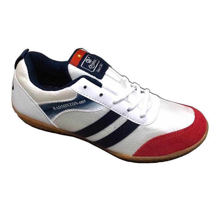 Giày cầu lông 085 màu trắng-navy Chất liệu: Vải, Cao su, Da tổng hợp. Độ cao: từ 7 - 10 cm. Giới tính sử dụng: Nam & nữ. Giày cầu lông 085 mang đến sự thoải mái và