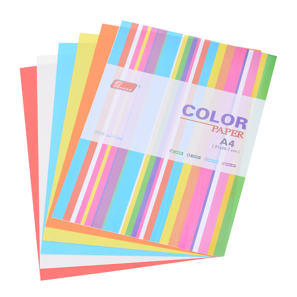 Giấy phù hợp với tất cả các loại máy in phun, máy in Laser, máy Fax laser, máy Photocopy, Giấy có nhiều màu dạ quang cho bản in độc đáo. Sản phẩm bao gồm 100 tờ, thuộc khổ A4, phù hợp với mọi nhu cầu in ấn hiện nay.