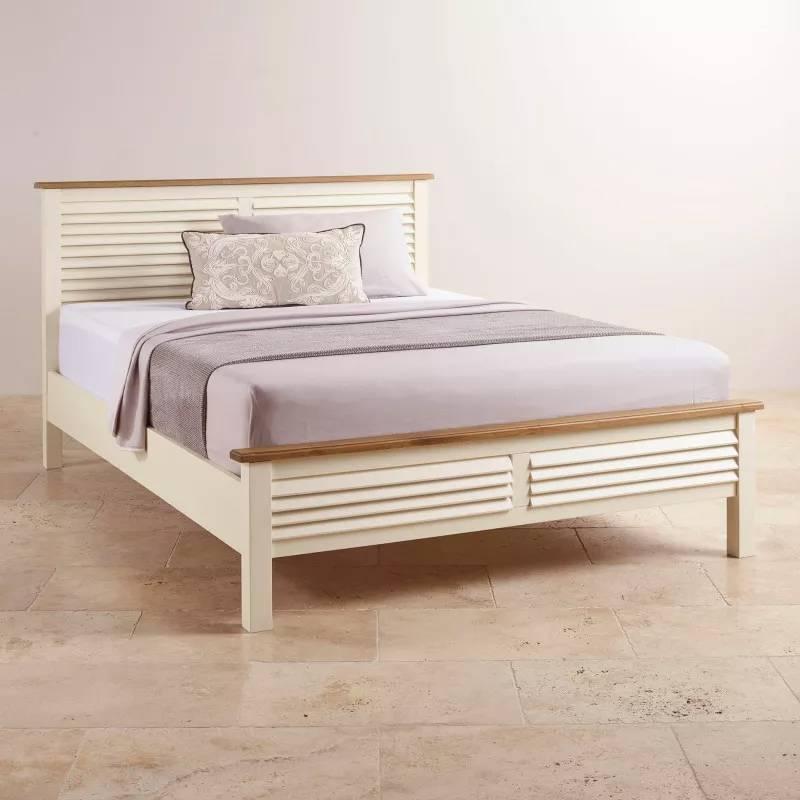 Giường Gỗ Sồi Băng Đạn Dạt Thường Màu Trắng Kem