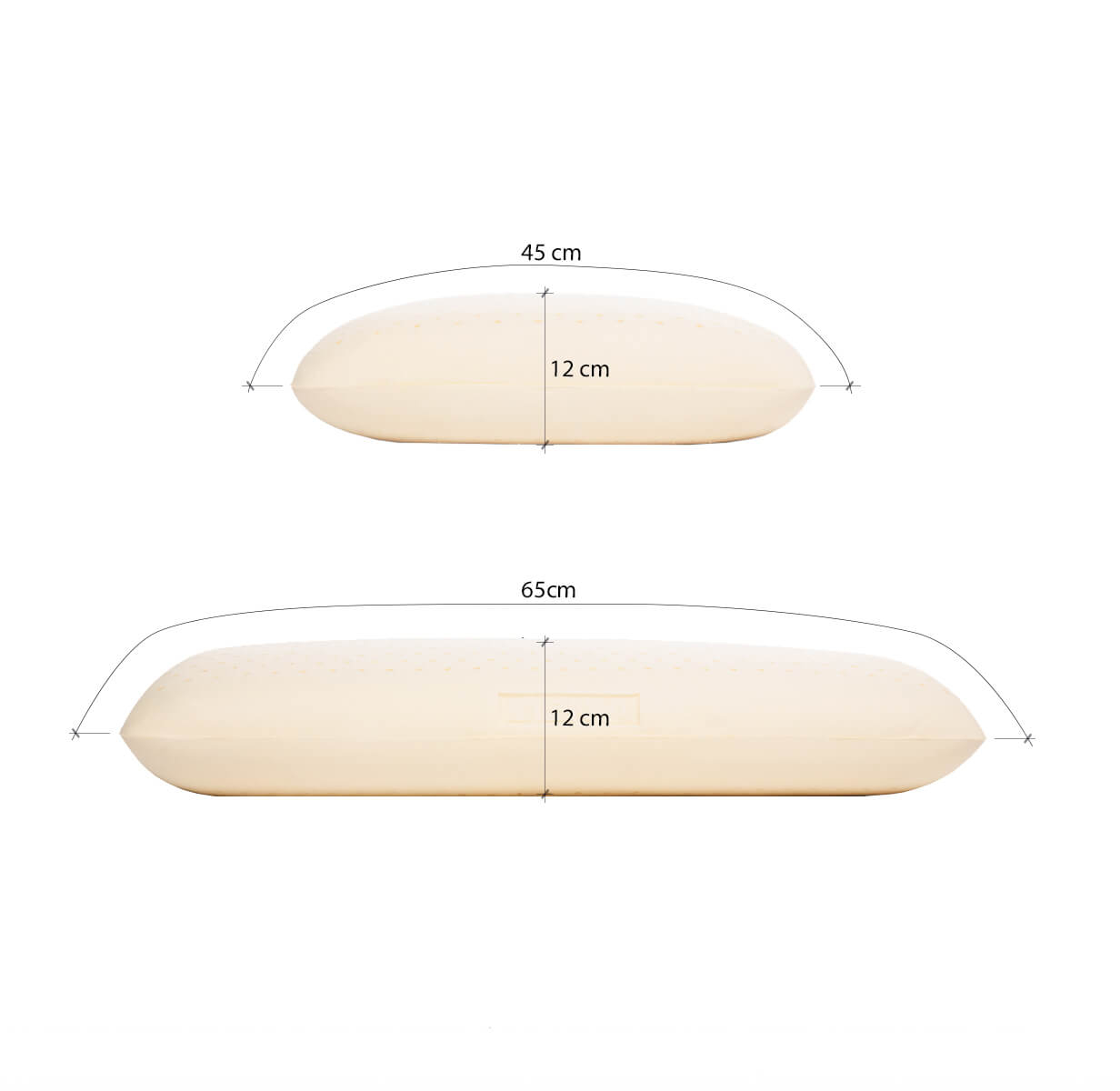 • 45 x 65 x 12 cm: Kích thước thông dụng nhất và được nhiều người dùng và dễ mua vỏ gối. Phù hợp với những người thích gối cao.