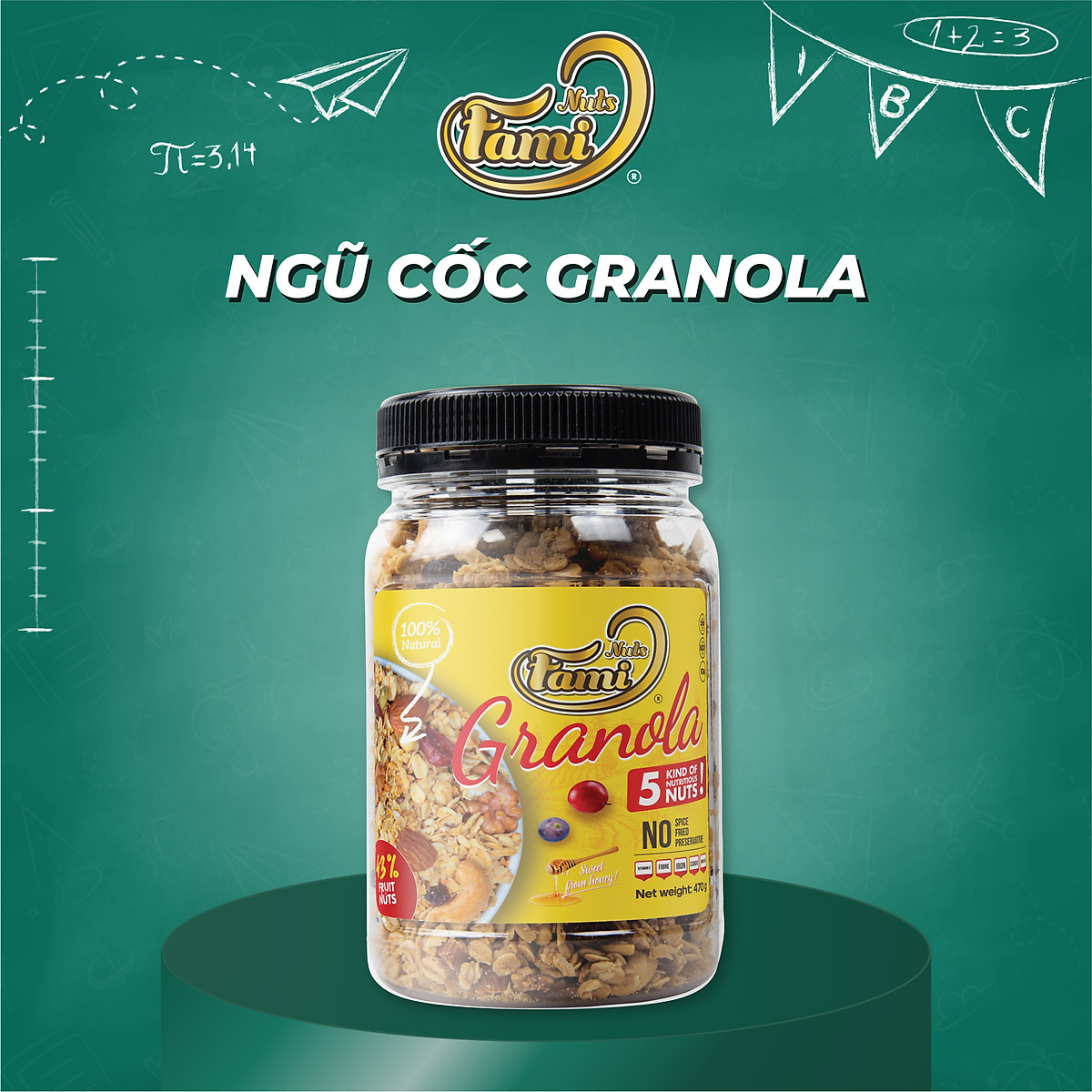NGŨ CỐC GRANOLA là một món ăn quen thuộc của người Mỹ vào mỗi buổi sáng, là hỗn hợp của nhiều thực phẩm lành mạnh có hàm lượng chất dinh dưỡng cao, giàu protein.Bao gồm các loại hạt dinh dưỡng, yến mạch, trái cây khô sử dụng công nghệ nướng giòn không chiên.
