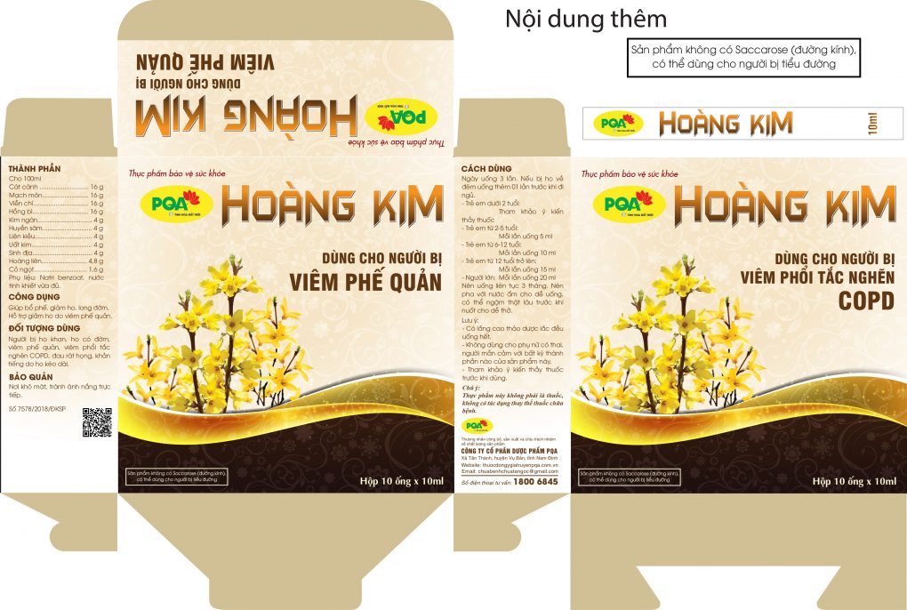 ✨Hoàng Kim PQA Giúp Bổ Phế, Giảm Ho, Long Đờm Và Viêm Phổi Tắc Nghẽn Mãn Tính Hộp 10 Ống
