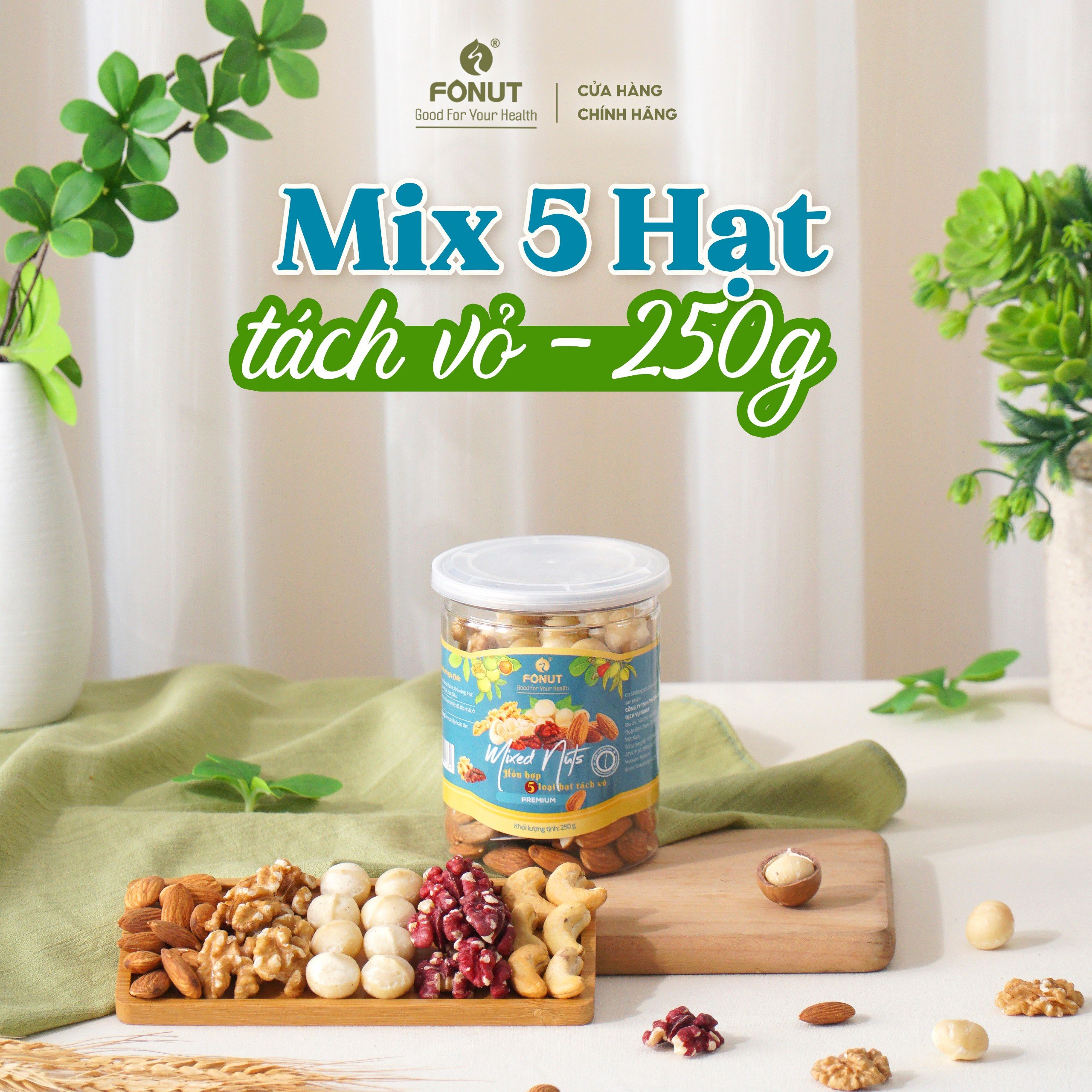 ✨Hỗn hợp Mixed Nuts 5 loại hạt tách vỏ Fonut Hũ 250g - 500g ( hạt óc chó đỏ / Vàng, hạnh nhân,mắc ca,điều)