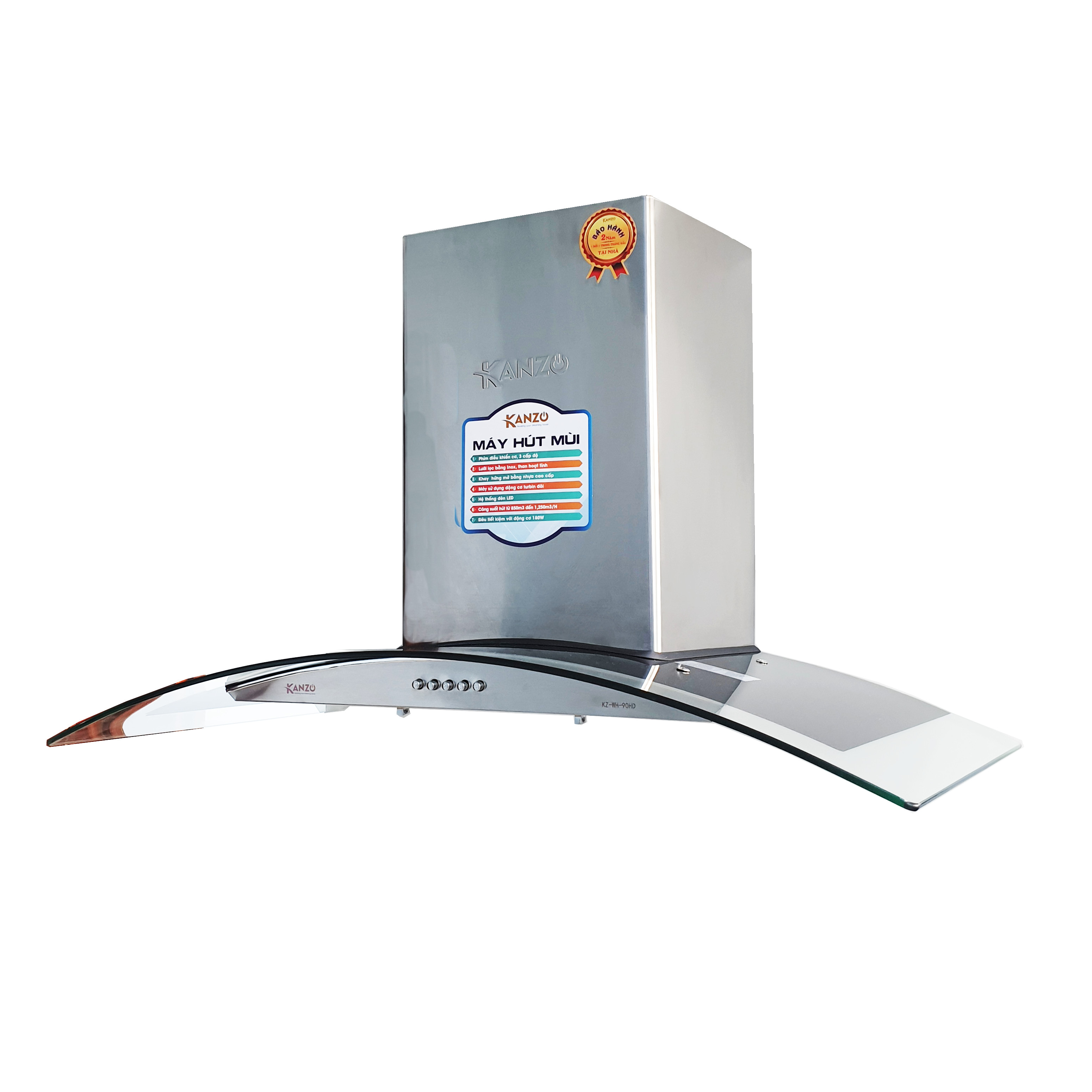 Tên sản phẩm/Model Máy hút mùi kính cong 900mm KZ-WH-90HD