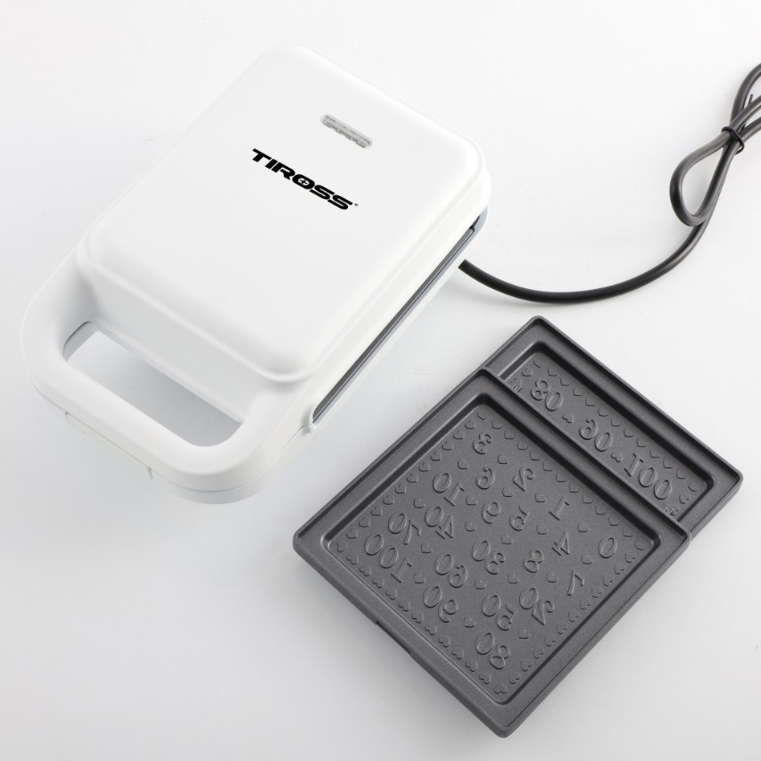 Thiết kế tiện dụng Kẹp nướng sandwich Tiross TS9658 giúp bạn chuẩn bị bữa sáng thơm ngon dành cho những người thân yêu của mình thật nhanh chóng. Máy nướng bánh mỳ TS9658 có thiết kế đơn giản với các khuôn có sẵn cho bạn chỉ cần đổ bột bánh đã pha chế vào khuôn, chỉ sau vài phút hoạt động các loại bánh sandwich, bánh quy, bánh trứ sẽ nhanh chóng được nướng chín. An toàn khi sử dụng Máy nướng bánh mì mini đóng mở dễ dàng với tay cầm chống bỏng. Vỏ ngoài được thiết kế chịu nhiệt bền. Kích thước mặt nướng là 14cm x 14cm có tráng lớp chống dính siêu bền, chịu nhiệt tốt và đặc biệt an toàn khi nướng. Nhờ đó bánh sẽ không bị cháy đen. Sau khi sử dụng việc vệ sinh cũng trở nên dễ dàng hơn. Máy nướng bánh Tiross còn trang bị đến 4 khay làm bánh khác nhau cho bạn thay dễ dàng khi làm các loại bánh. Chức năng cảm biến nhiệt và tự động khoá Chức năng cảm biến nhiệt và tự động khoá giúp việc vận hành trở nên an toàn hơn. Máy thiết kế 2 đèn báo gồm đèn báo nguồn và đèn báo sẵn sàng hoạt động cho bạn chủ động nướng.