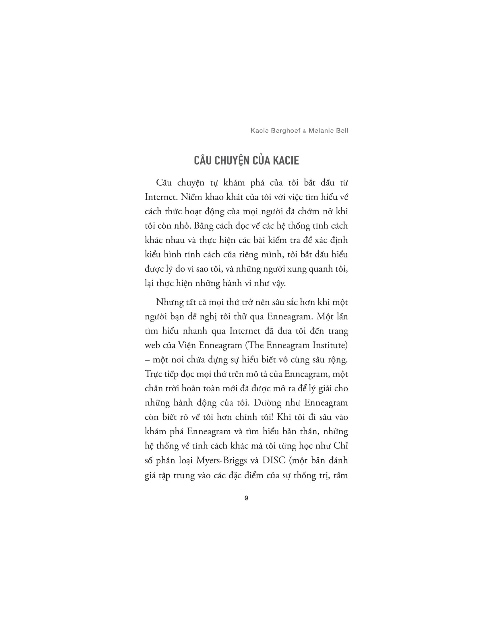 Kacie Berghoef là giáo viên được ủy quyền của Viện Enneagram, người chủ trì hội thảo và nhà nghiên cứu. Bà đặc biệt tận tâm trong việc tìm kiếm các ứng dụng mới của Enneagram, từ việc phát triển các ứng dụng thực tế đến dạy các kỹ năng giao tiếp cho các chuyên gia và nhà quản lý trong ngành công nghiệp công nghệ.