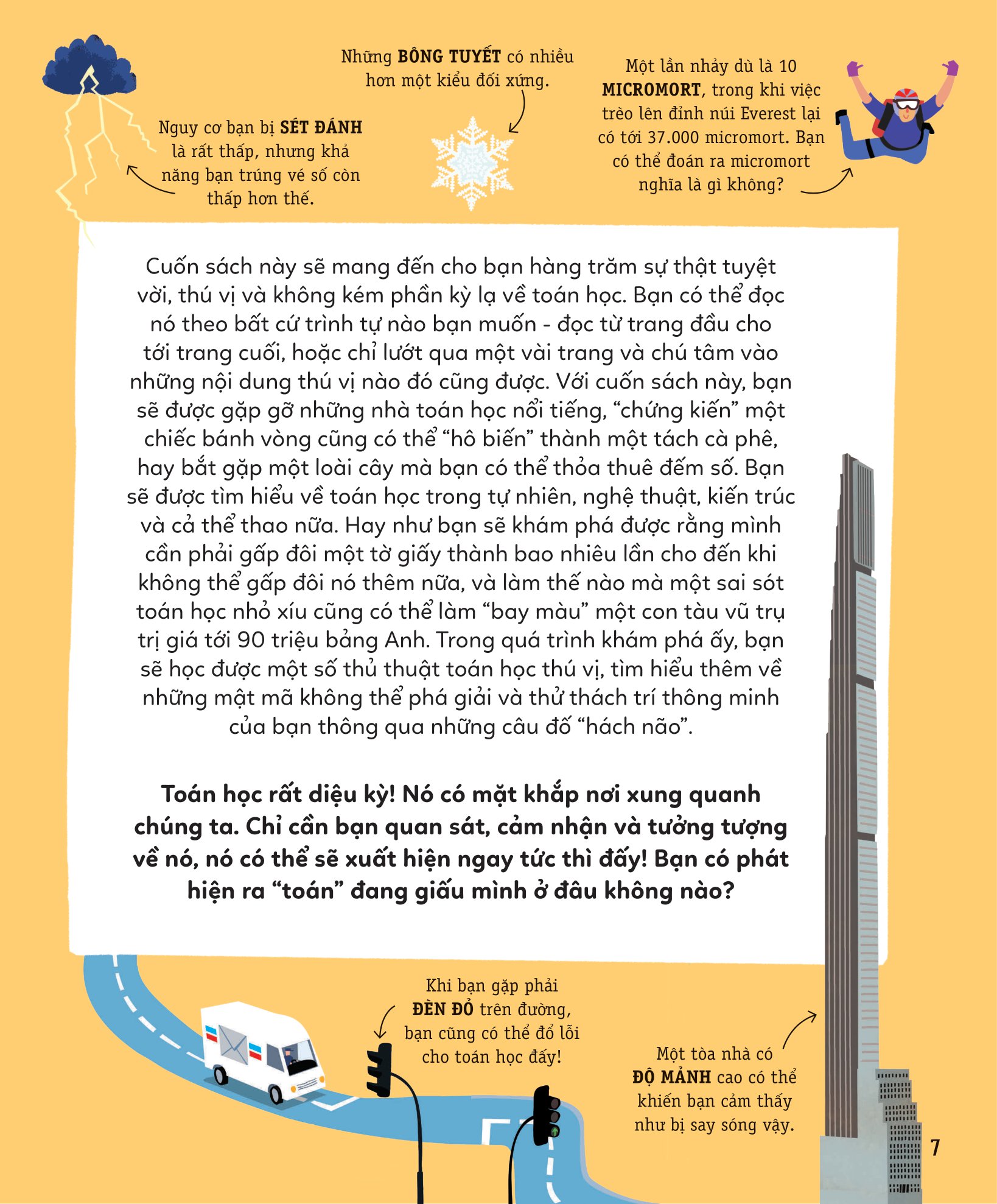 Với cuốn sách này, bạn sẽ đi từ bất ngờ này đến bất ngờ khác trên hành trình khám phá những điều thú vị về toán học, hàng trăm sự thật tuyệt vời và không kém phần kỳ lạ về toán học sẽ được hé lộ thông qua gần 100 trang sách.