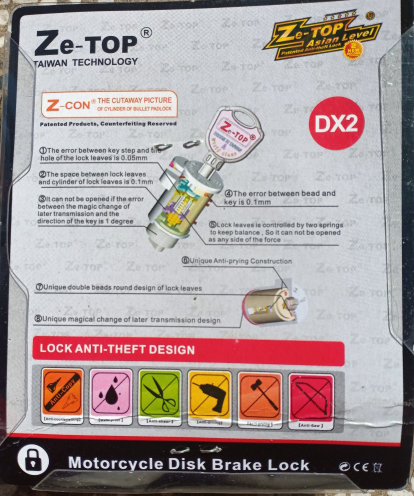 • Bạn có thể xua tan cảm giác lo lắng khi sử dụng Khóa phanh đĩa xe máy Z-CON, chống trộm an toàn cho "xế yêu". Khóa giúp bảo vệ an toàn tuyệt đối cho tài sản của bạn đồng thời giúp bạn an tâm hơn trong lúc làm việc hay đ chơi