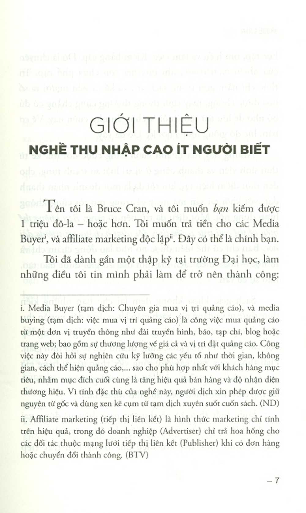 Bruce Cran mài giũa kỹ năng kinh doanh của ông nhờ sự chăm chỉ làm việc và kinh nghiệm. Là một cựu luật sư tranh tụng và chuyên gia tiếp thị trực tiếp hiện tại, Cran Đổng Sáng Lập DFO Global, là một trong những Công Ty Marketing theo hiệu suất hàng đầu thế giới. Giờ đây, ông sẵn sàng chia sẻ những kiến thức đã mang đến thành công cho công ty của mình. Bất kỳ ai hứng thú với việc theo đuổi sự nghiệp trong ngành tiếp thị số hoặc thương mại địện tử sẽ tìm thấy một gia tài kiến thức và các hướng dân trong những trang sách của Kiếm Hơn Triệu Đô Kiếm Hơn Triệu Đô sẽ chỉ cho bạn những điều cần và phải làm để trở thành một Media Buyer thông qua những chia sẻ, kinh nghiệm, các câu chuyện và những bí kíp của chuyên gia về thương mại điện từ kiêm CEO Bruce Cran. Bạn sẽ học thêm được vẽ nghệ thuật marketing, Affiliate marketing, quảng cáo, và cách thiết kế phễu bán hàng để thúc đẩy doanh số. Nếu bạn muốn kiếm được hàng triệu đô, hiểu biết về Kinh doanh & Kinh tế - Thương mại Điện Tử / Tiếp thị số, hãy bắt đầu hành trình của mình cùng Kiếm Hơn Triều Đô!