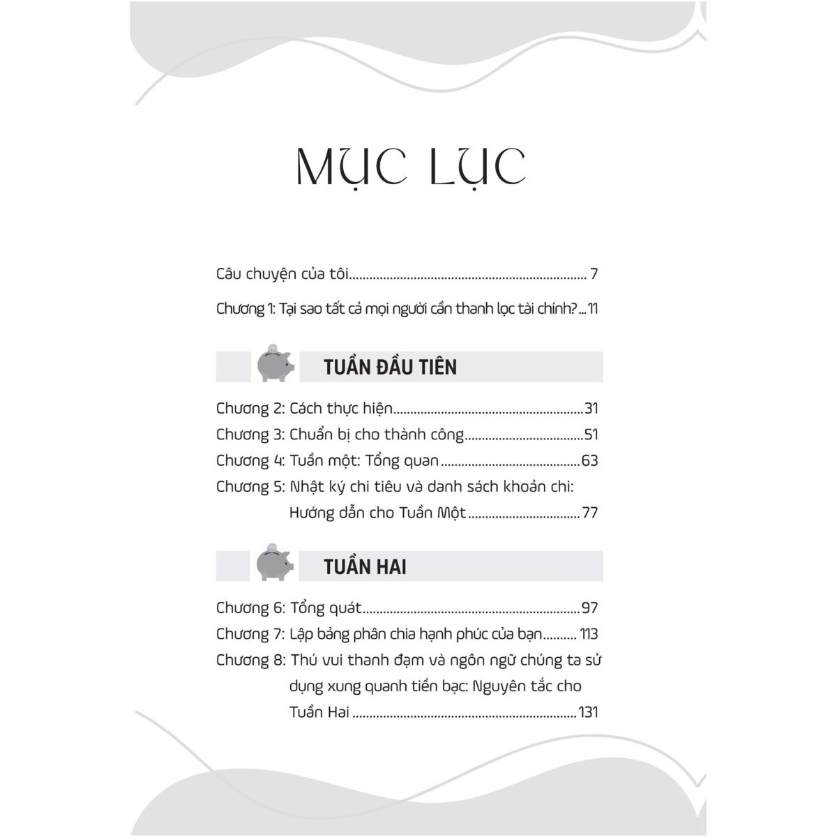 Bằng chương trình Thanh lọc Tài Chính trong 30 ngày, Kỹ năng lập kế hoạch và quản lý tài chính cá nhân trong 30 ngày giúp bạn định hình lại cách chi tiêu, thay đổi tư duy về tiền bạc và đảm bảo phương pháp quản lý tài chính cá nhân hiệu quả. Cuốn sách chính là cứu cánh cho mối quan hệ không mấy tốt đẹp của bạn với tiền bạc và giúp bạn vạch ra một kế hoạch chi tiêu để có thể vẫn vui vẻ mà không tốn kém. Lối tư duy tích cực và đúng đắn về tiền bạc mà tác giả đưa ra sẽ nhanh chóng hỗ trợ bạn hoàn thành các mục tiêu mà bạn mong muốn nhất trong đời.