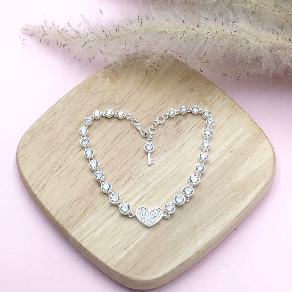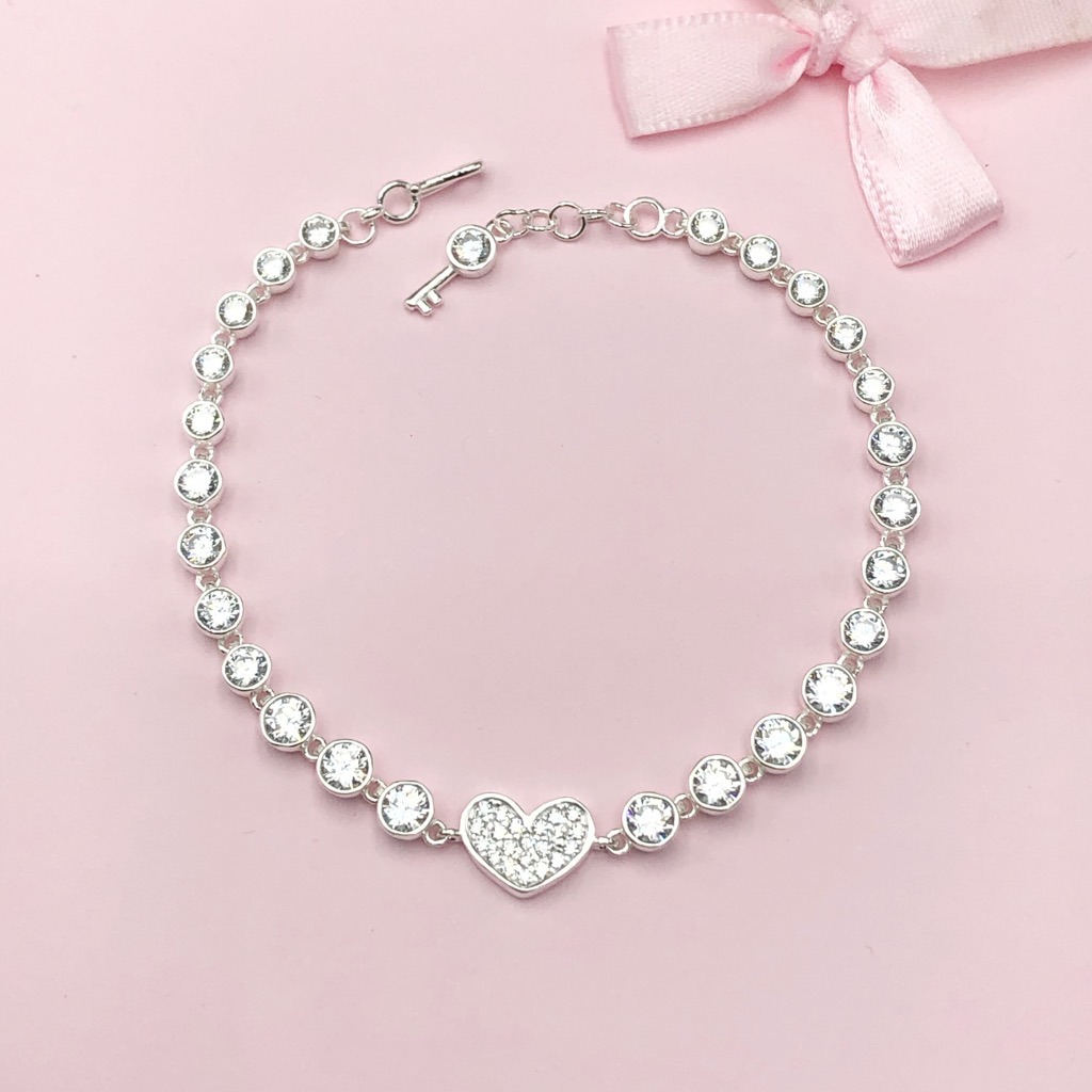 Vòng , Lắc Tay Nữ Bạc 925 Trái Tim Đính Đá Cao Cấp Bạc Hiểu Minh LTU577