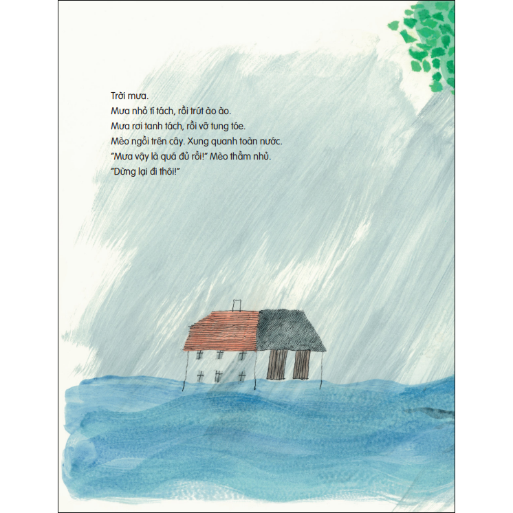 "“Lại đây nào!” Mèo bảo. Và thế là Mèo mời từng con vật cùng lên thân cây lánh nạn." Câu nói đơn giản này đã thể hiện rõ tấm lòng nhân hậu và sự dũng cảm của Mèo Bảo, trở thành thông điệp chính của câu chuyện.