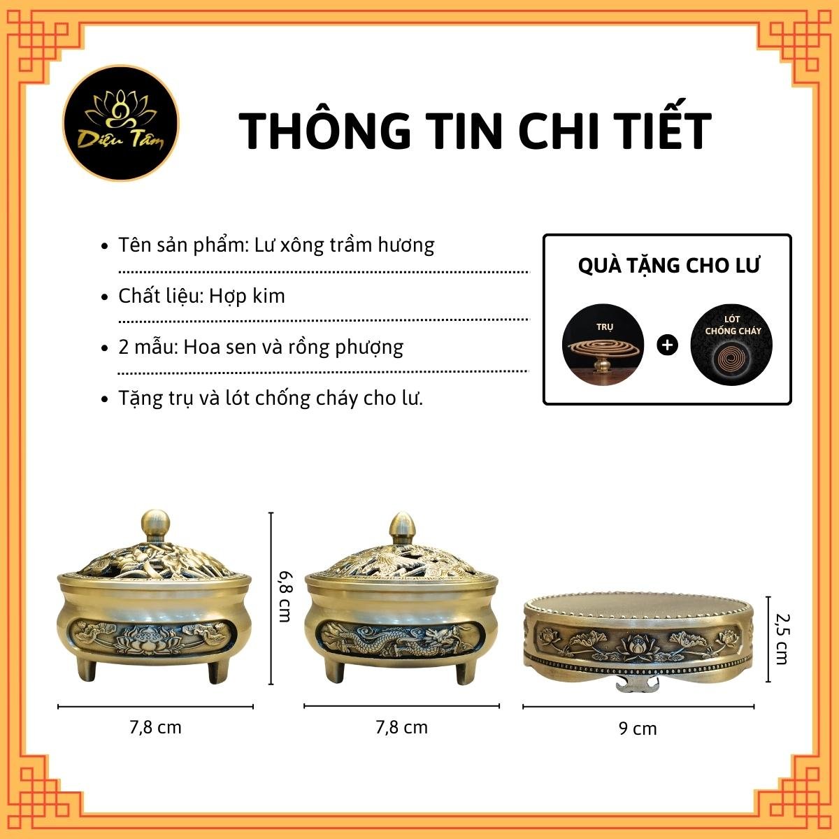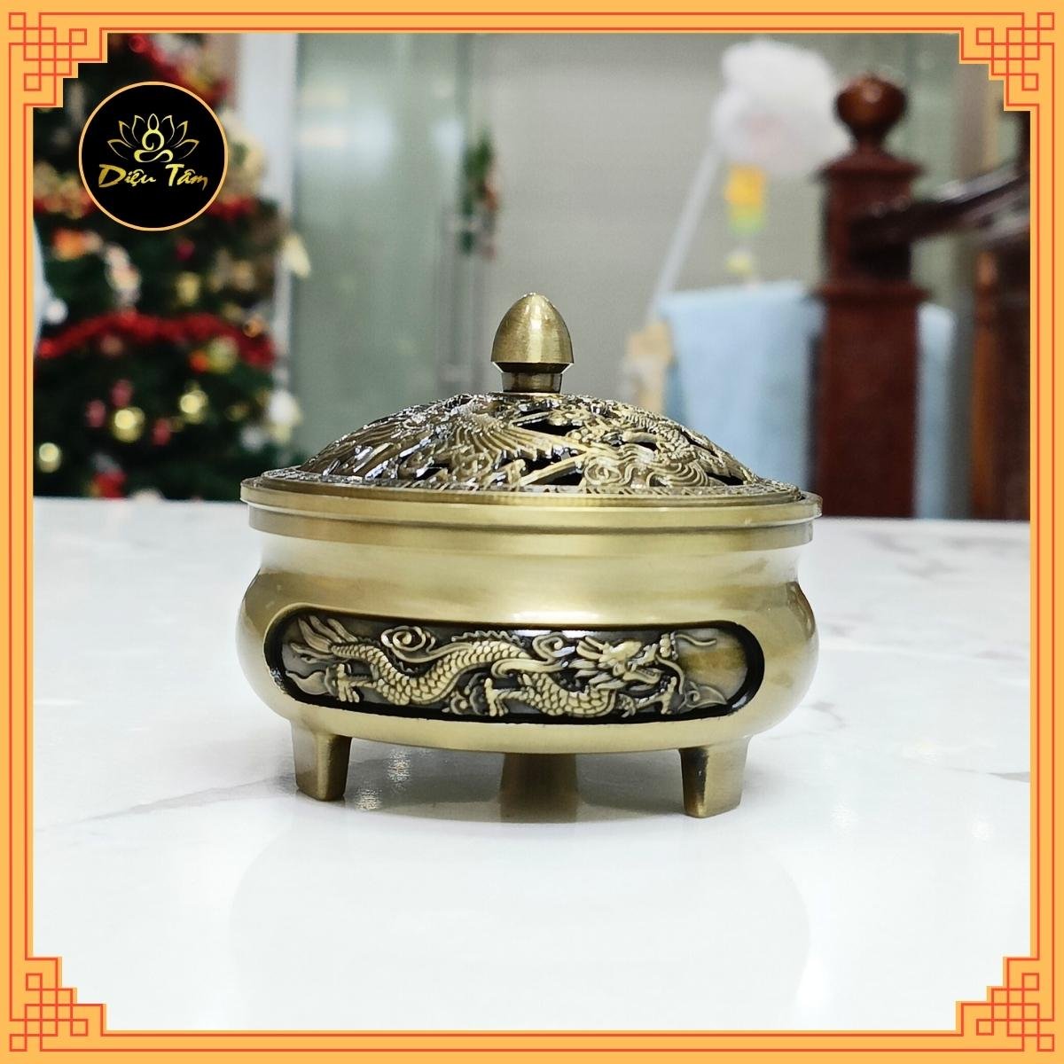 Lư xông trầm hương còn được gọi tên thông dụng khác như đỉnh xông trầm, đỉnh trầm, đỉnh đốt trầm, Đây được biết là tên gọi của một vật dụng được để đốt trầm hương và từ đó lan tỏa được hương trầm vào không gian sống. Việc đốt trầm được biết đến để giúp bạn thư giãn hoặc để tạo hương thơm cho gia đình của bạn Ngoài ra, trầm hương còn là một biểu tượng của đời sống tâm linh và phong thủy. Đây là một nét đẹp văn hóa truyền thống được lưu truyền qua bao đời nay. Đối với những người thờ Phật, ngoài việc thắp hương nén thông thường thì còn thường sử dụng thêm trầm hương để cúng dường Phật. Sử dụng trầm hương nụ hay trầm bột là tự nhiên nhất có thể. Và để đốt trầm viên hoặc trầm bột thì không thể thiếu “lư đốt trầm”. Tuỳ theo phong tục từng nơi mà “lư đốt trầm” cũng có nhiều hình dạng và chất liệu khác nhau. Theo truyền thống thì “lư đốt trầm” thường có hình bầu, trên có nắp, vừa có tác dụng đậy “lư đốt trầm”, vừa có tác dụng tản khói hương. Một số nơi ở Trung Quốc, Indonesia, Malaysia hay Ấn Độ, “lư đốt trầm” còn có hình hộp chữ nhật, dùng để đốt trầm cây không chân. Lư đốt trầm hương đẹp, chất lượng, cao cấp Dụng cụ đốt trầm hương tại Diệu Tâm shop có sẵn như: lư đồng xông trầm, lư điện xông trầm , bộ dụng cụ đốt trầm hương, và nhiều mẫu lư hương đốt trầm khác với đa dạng mẫu mã. Những mẫu lư hương đốt trầm hương đang được bán tại Diệu tâm shop đều được tuyển chọn từ những nguồn cung cấp lư xông trầm uy tín, tin cậy tại xưởng sản xuất đảm bảo giá thành rẻ nhất lư xông trầm chất lượng tốt nhất. Chính vì vậy quý khách hàng hoàn toàn có thể yên tâm về mẫu mã sản phẩm cũng như chất lượng. Lư xông đốt trầm hương giá cả cạnh tranh Lư xông trầm hương có mẫu mã, họa tiết hoa văn cổ điển